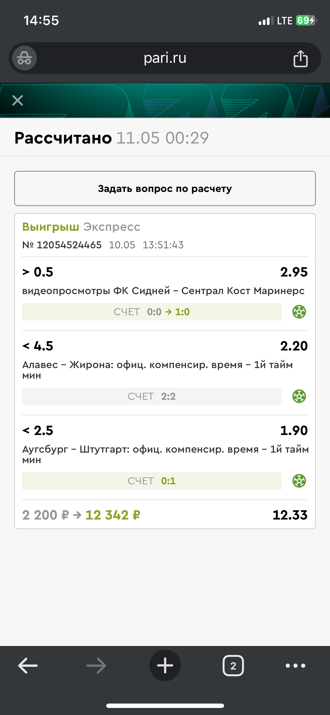 Здравствуйте, заключил пари, событие сыграло добавили 3 минуты, букмекер конфисковал часть суммы, уверен если добавили бы >5 минут, при таком раскладе, для них все было бы нормально, много общался с службой поддержки, договориться не получилось, уточнил что при обращении к арбитражу, букмекеру все таки придется заплатить, но с подпорченной репутацией, к сожалению коммуникацию наладить не удалось, в беттинге 15+ лет с таким беспределом на моей памяти сталкиваюсь впервые, просьба рассудить справедливо, также сообщил что сумма не стоит разбирательств, уверен что вы решите небольшую проблему, также на нервной почве слил выплаченную часть, т.е пошел немного не по плану, уточню что в Ла лиге добавляют и по 10 минут компенсированного времени к таймам.Сотрудничаю с компанией давно, ранее таких случаев не возникало, в целом букмекером доволен, но сомневаюсь что данный негативный осадок забудется.Номер пари: № 12054524465С Уважением.