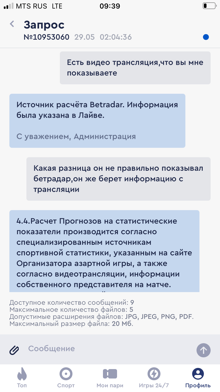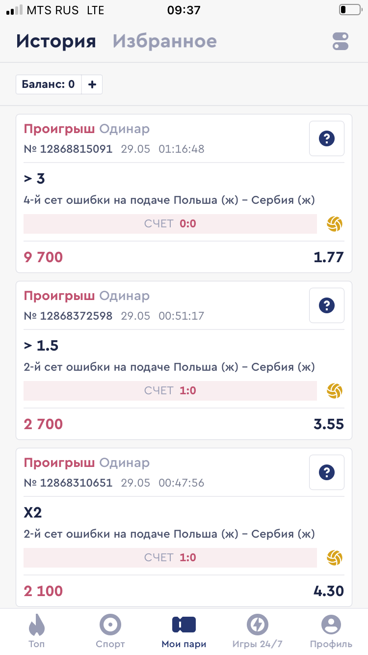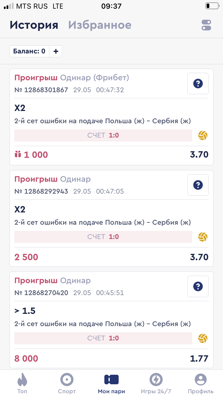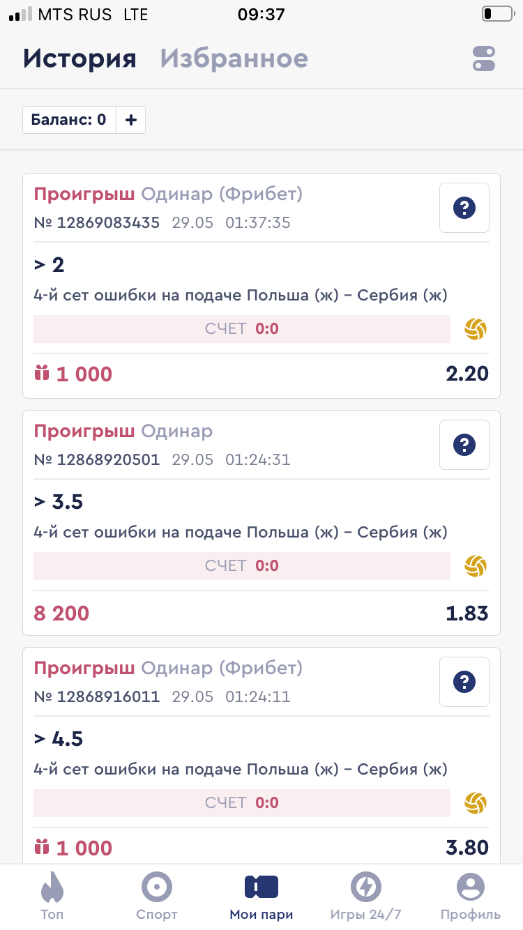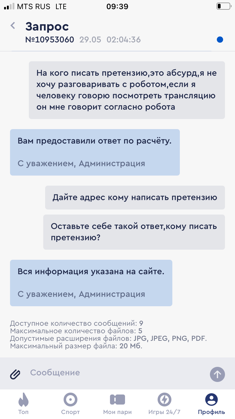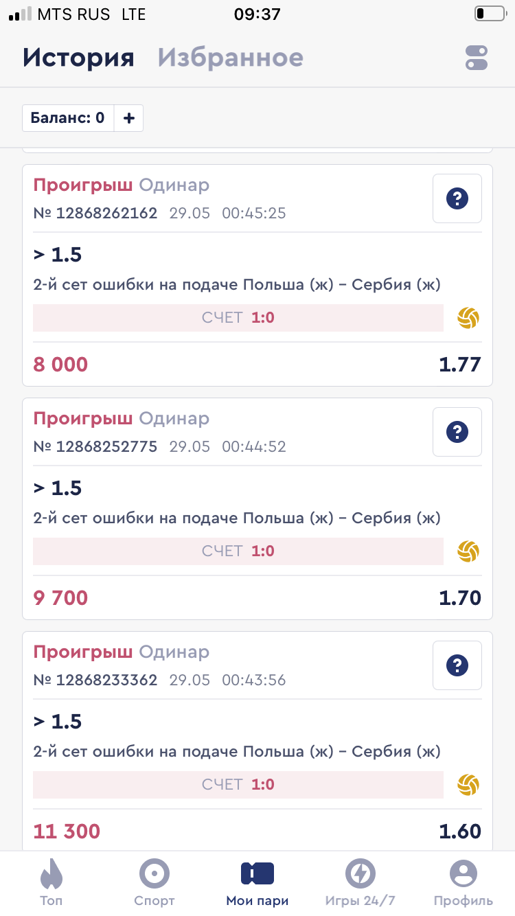 Делал ставки на ошибки на подаче во втором и четвертом сете в обоих сетах по 5 ошибок, это трансляция на матч,они ведут расчет согласно какого то приложения,но оно у них зависло,я им нашел трансляцию матча назвал очки когда были ошибки,а они не хотят смотреть,вы понимаете какое это мошенничество я смотрю матч у них на сайте,делаю ставки исходя из матча,они мне говорят что согласно betradar,как можно доверять роботу если есть трансляция матча,прошу разобраться,настолько пудрят голову людям,как можно так обманывать я смотрю матч там в сете 5 ошибок они пишут 1,в 4 сете пять ошибок они пишут 0,овощи сидят,я понимаю если что то зависло там,но мои деньги они обязаны вернуть я 4 сет брал до сета ставки там 5 ошибок,это просто воровство