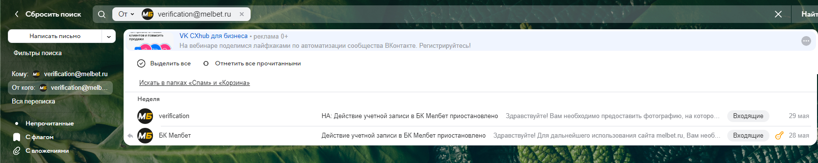 Когда у меня запросили договор сотового оператора, я пошёл в салон и переоформил номер с моей мамы на себя. Мелбет мне ничего не говорил по поводу того, что я должен им предоставить договор с датой именно до 28 мая. Теперь они у меня просят то, что предоставить невозможно, так как я владелец этого номера и никаких других договоров на этот номер кроме моего больше не существует. Спрашивал у теле2, они стёрли всю историю транзакций и тд, и получить это НЕВОЗМОЖНО. Мелбет просит у меня то, что изначально у меня не запрашивал. И изначально они приняли мой договор, а сейчас начали снова меня мучать даже после видеоверификации. ПО-МО-ГИ-ТЕ!!!
