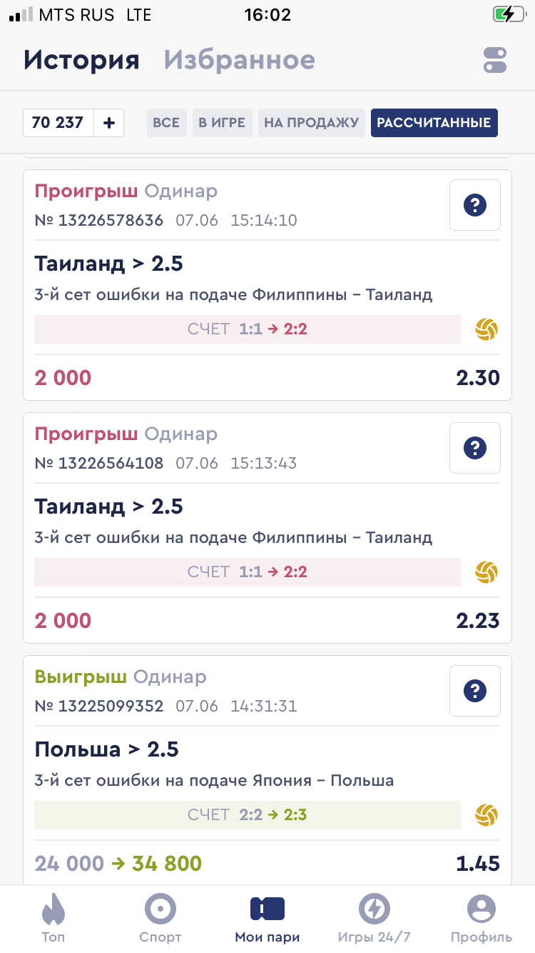 Делал ставки на статистику,2 ставки по 2к ошибки на подаче Тайланд больше 2,5,ошибки в сете были при счете 0-0,14-14,23-20,опять ссылаются на программу,хотя даже у них в текстовой трансляции 3 ошибки и по видео трансляции тоже 3