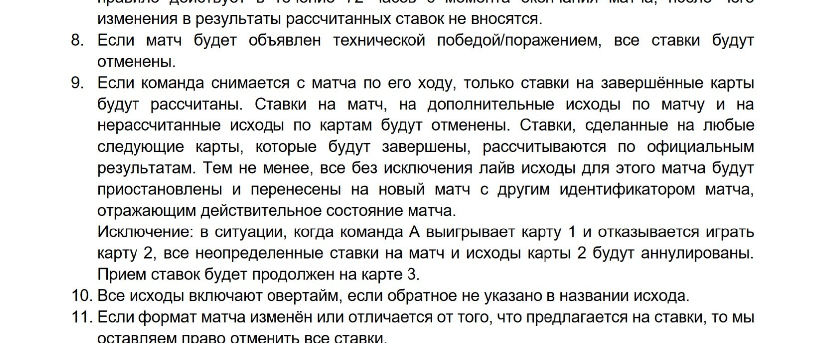 дополнительные исходы по матчу и на нерассчитанные исходы по картам