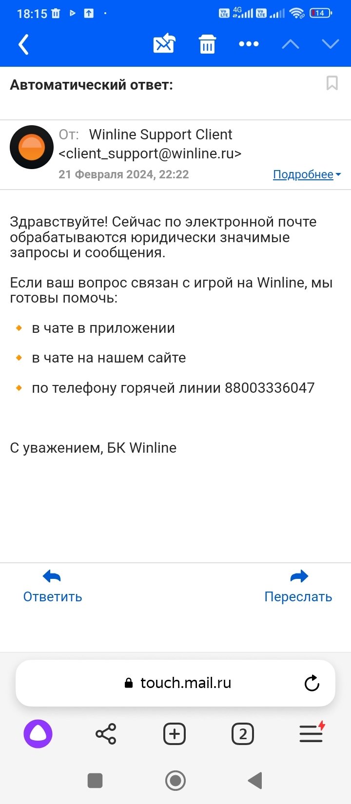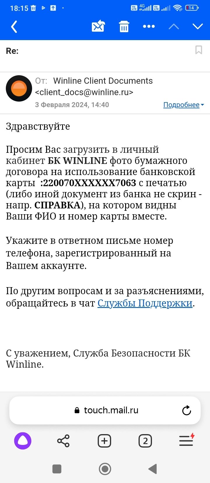 Здравствуйте. Покажите ответ от БК, пожалуйста.