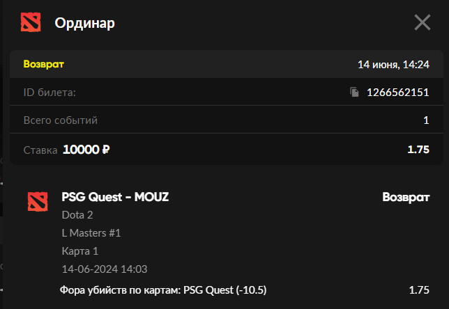 Сделал ставку, которая сыграла. Спустя два часа задержки букмекер сделал возврат ссылаясь на технические ошибки и "некорректный коэффициент". Конкретизировать ошибку букмекер не стал, хотя я просил. Исход был открыт ещё долго и коэффициент как был выше, так и ниже моего. Исход был выбран мной верно, так что не вижу справедливым рассчитывать по коэффициенту 1 и ничем не компенсировать ситуацию, несмотря на то, что букмекер ссылается на правила(Расчет произведен согласно пункту "ПРАВИЛА АЗАРТНЫХ ИГР БУКМЕКЕРСКОЙ КОНТОРЫ").