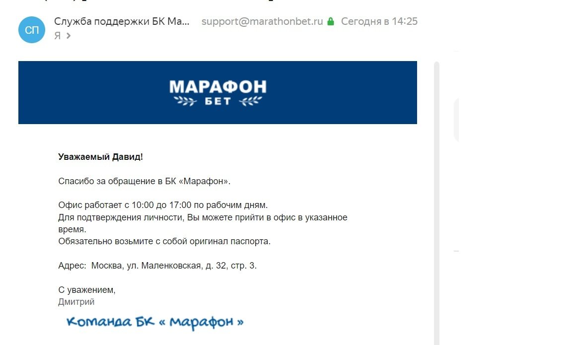 Это письма, доказывающие, что Марафон противоречит сам себе. Верификация - формальность. Они тянут время, не пойму для чего. Думаю, хотят попросту отжать все деньги или замучить меня, чтобы я сам от них отказался