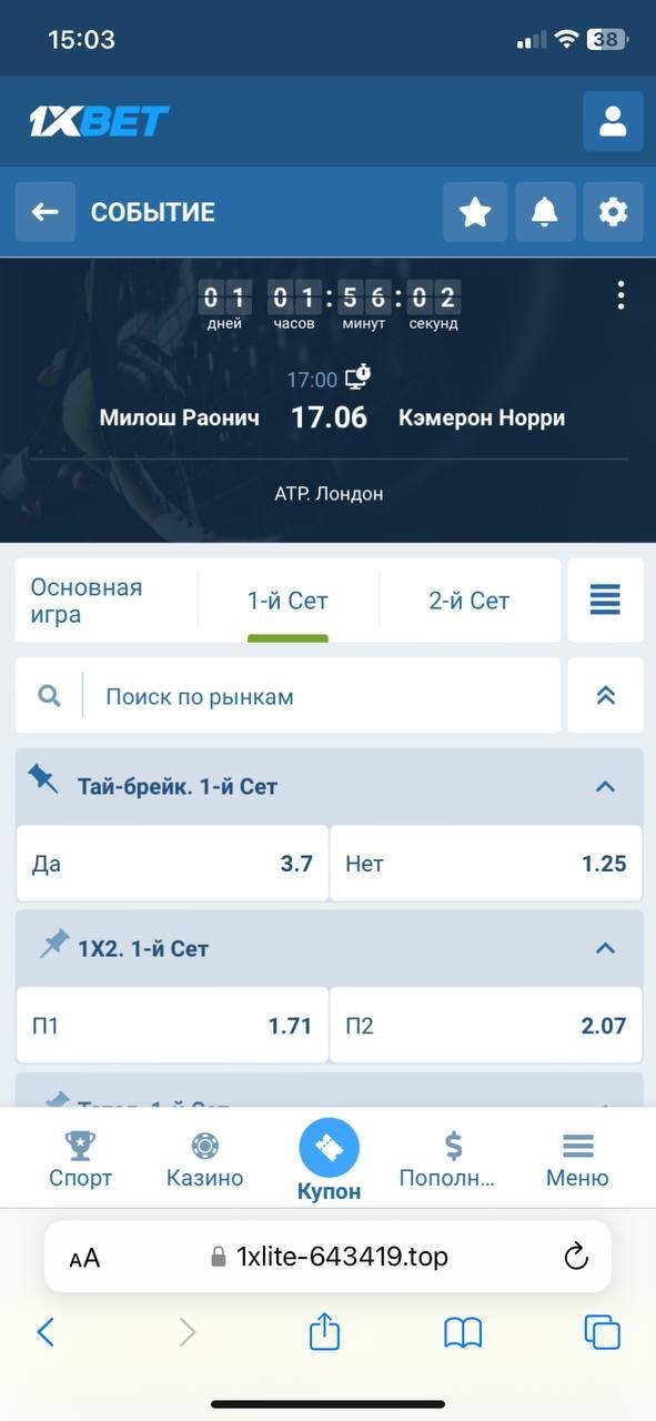Здравствуйте. Ставил на матч Раонич - Норри. Первый сет ТБ 12.5. За 3.3. Дали возврат непонятно почему. Ставка по итогу зашла.Контора намекает на неверный коэффициент, но во всей мировой линии он был такой, в том же 1Х и марафоне и вовсе было по 3.7. Считаю подобные действия полным беспредлом. По поздней линии коэффициент был 2.7, что не сильно отличается от того, за какой коэффициент я ставил. Таких случаев тысячи каждый день. Так же у меня после ставки порезали аккаунт и убрали вип статус, запретив участвовать в акциях. Хотя ставил там очень давно. Требую все вернуть на место.
