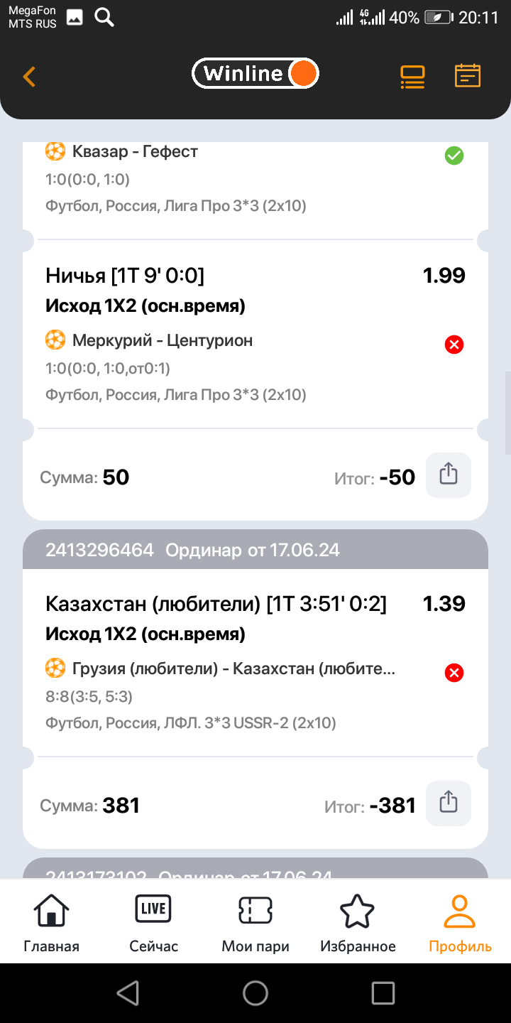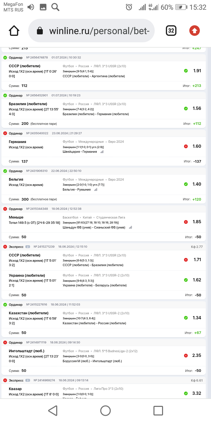 Здравствуйте. БК просит выложить скриншоты с 17.06. по сегодняшний день из раздела "История пари" на полной версии сайта.