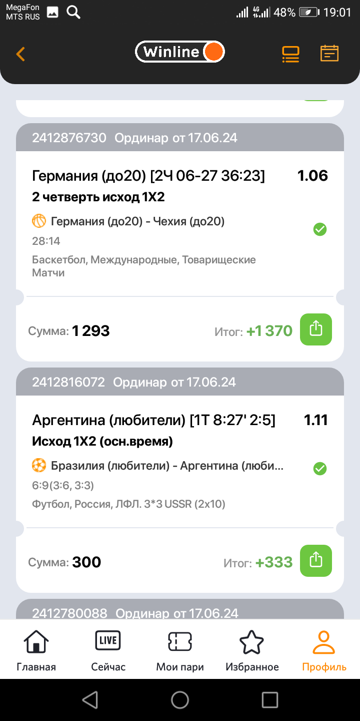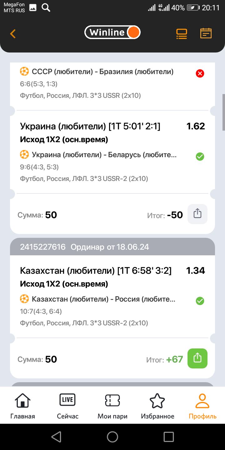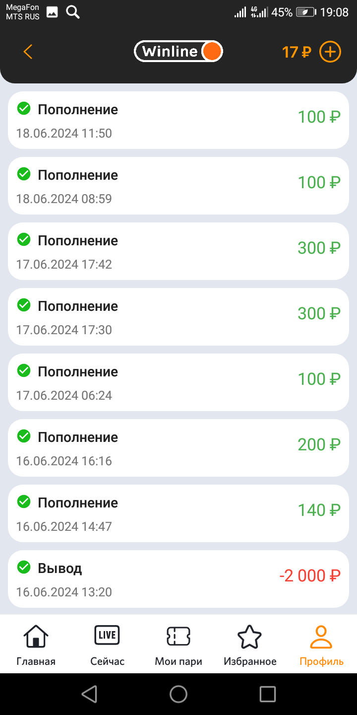 А вы точно потом не проиграли эту сумму какой-нибудь ставкой? Можете тогда выложить историю последних ставок с полной версии сайта? Просто нам сообщают, что у вас не было заказанной выплаты.