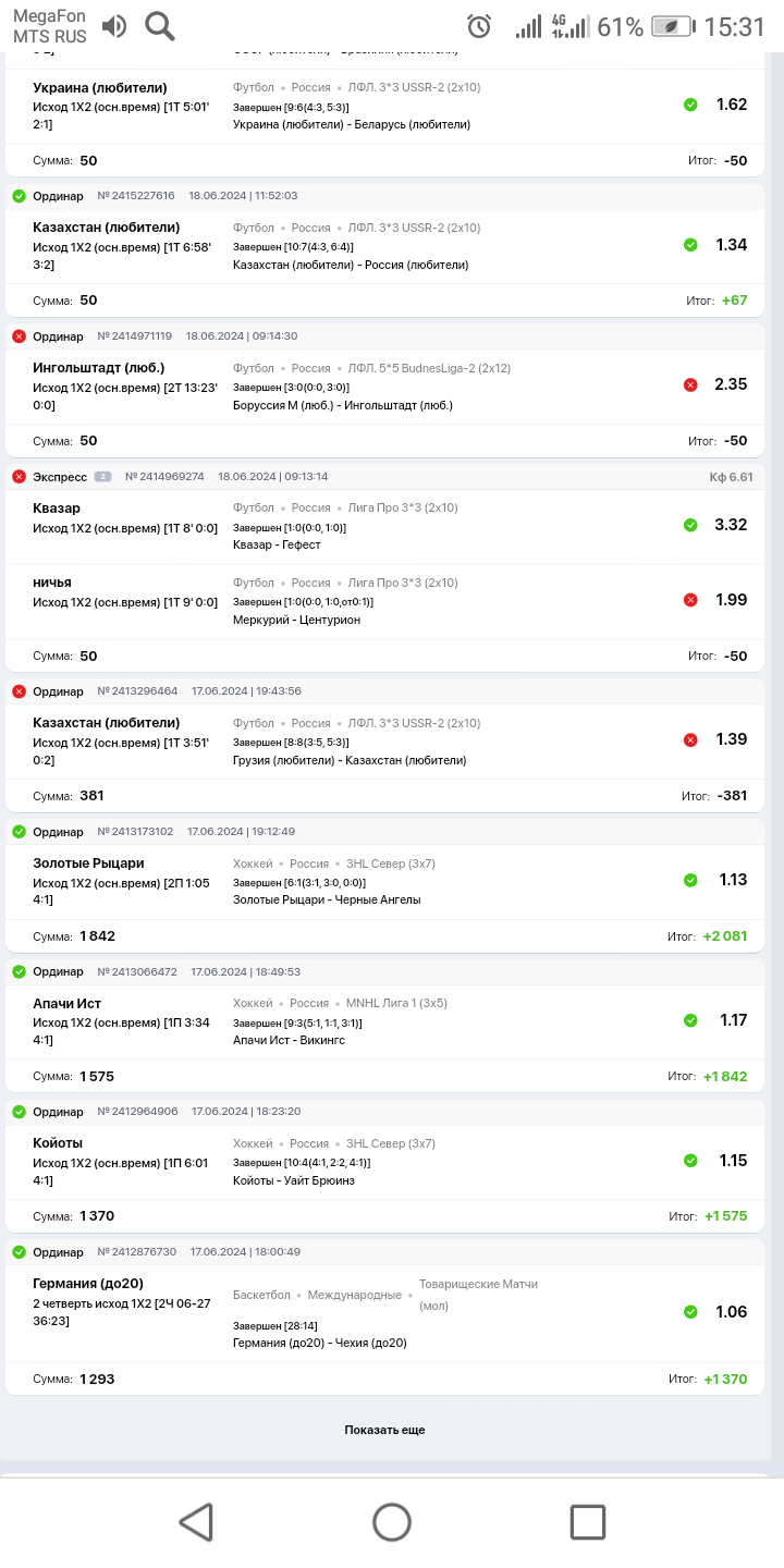 Это все ставки, с учётом того что я ещё пополняла счёт после этого