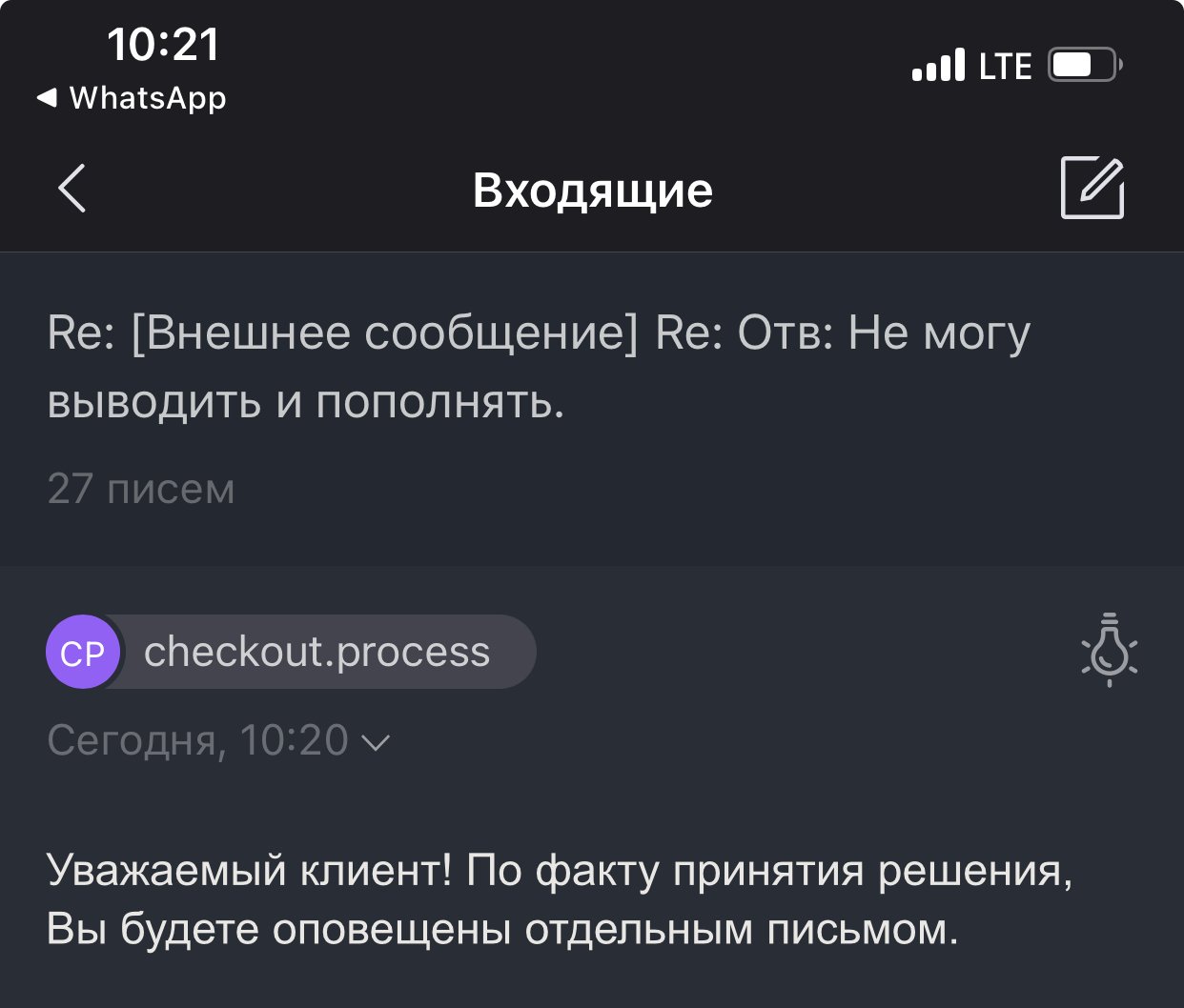 Добрый день, Дмитрий. Сегодня 15 день после того, как я отправил выписку на эл. почту.