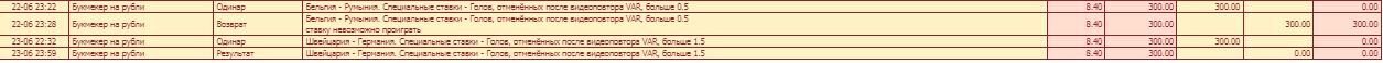 Ваша ставка в матче Румыния - Бельгия принята в 23:22, а отмененный гол случился в 23:19. То есть это ставка на свершившееся событие. Возврат в рамках правил. В матче Швейцария - Германия был только один отмененный ВАР гол. Изначально незасчитанные арбитром голы под условия этого рынка не подходят.