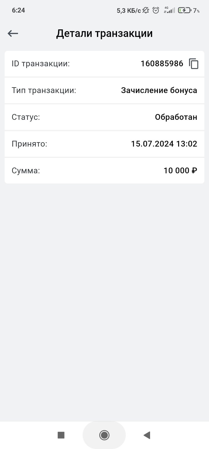 В истории транзакции пишут начислен бонус, но отыграть на него я не смог. Его небыло