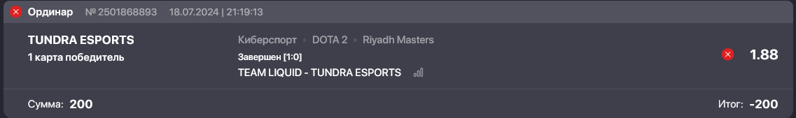Поставил ставку на команду которая выиграла а мне засчитали проигрыш.Это как вообще понимать?
