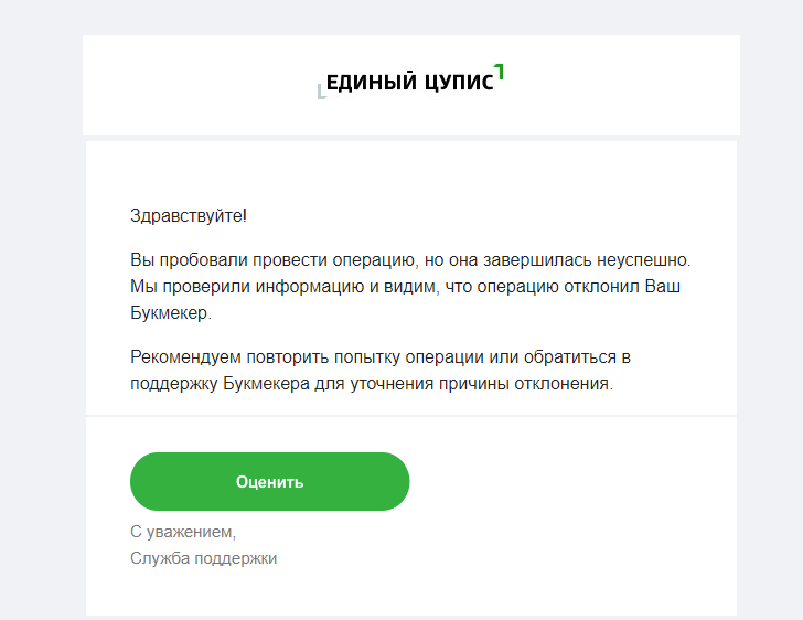 Здравствуйте, Winline не хочет переводить выигрыш в размере 10250 руб, после вывода цупис отправляет сообщение: Здравствуйте!Вы пробовали провести операцию, но она завершилась неуспешно. Мы проверили информацию и видим, что операцию отклонил Ваш Букмекер.Рекомендуем повторить попытку операции или обратиться в поддержку Букмекера для уточнения причины отклонения. Я писал в поддержку БК и они ответили что на аккаунте нет никаких ограничений, но вывод отменяется сразу после заявки о выводе, но статус вывода при этом остается "на рассмотрении"