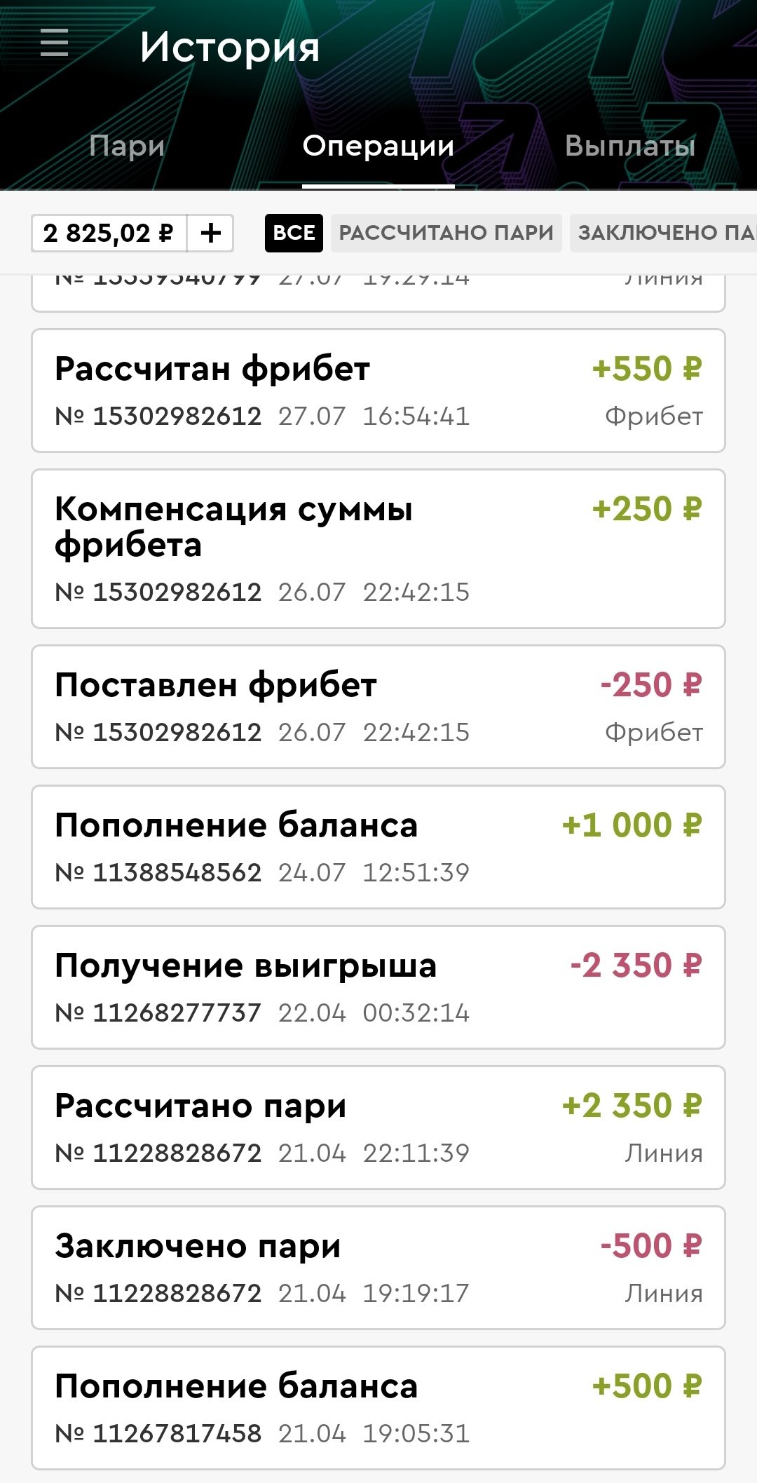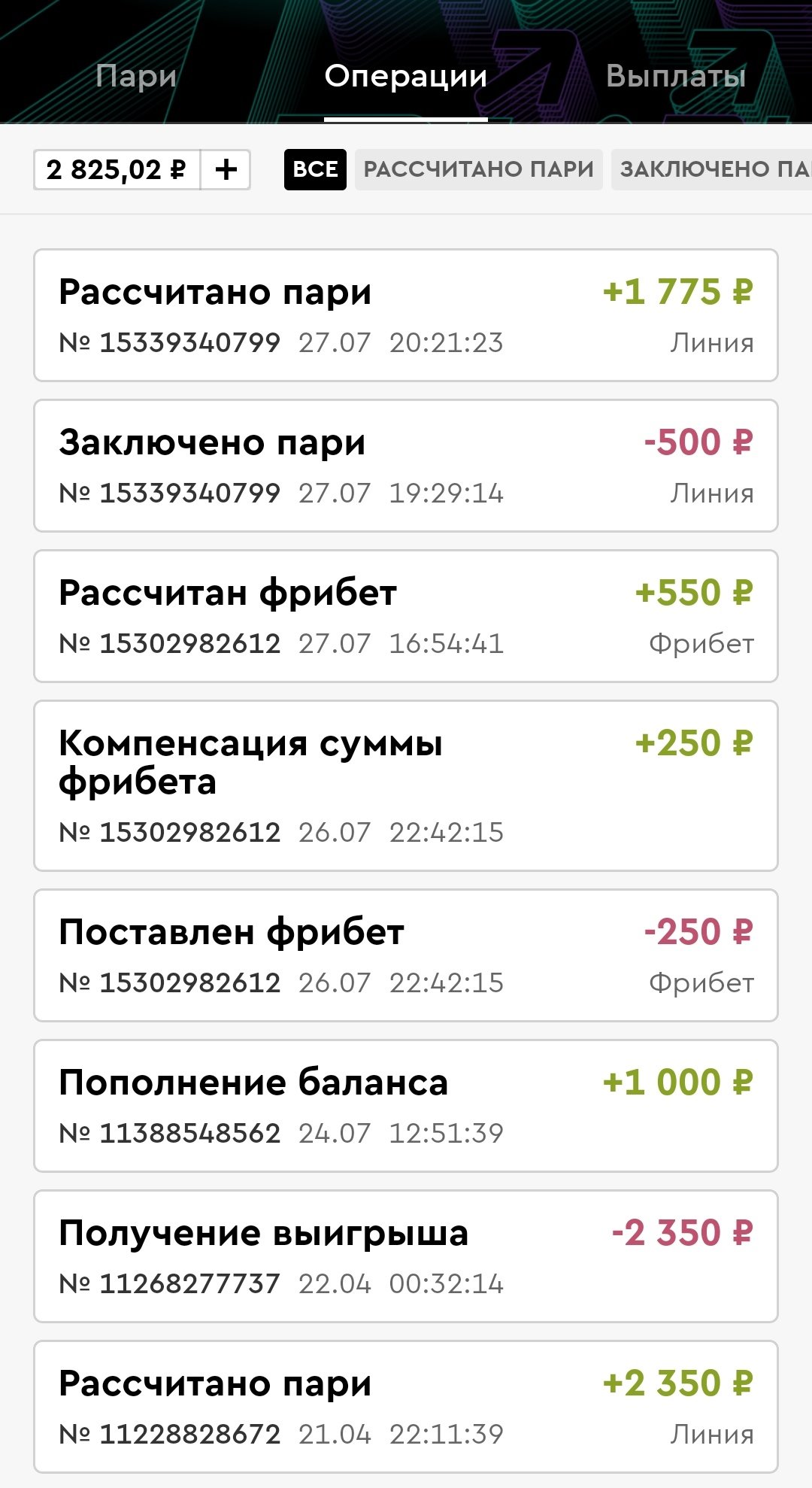 Мой депозит 500 выигрыш с него 2350. Потом депозит 1000 , выигрыш 1775. Откуда они взяли цифру 4355. Депозит 500 рублей я использовал. А позавчера 500 руб поставил с депозита 1000. По идее мне надо ещё 500 рублей поставить.
