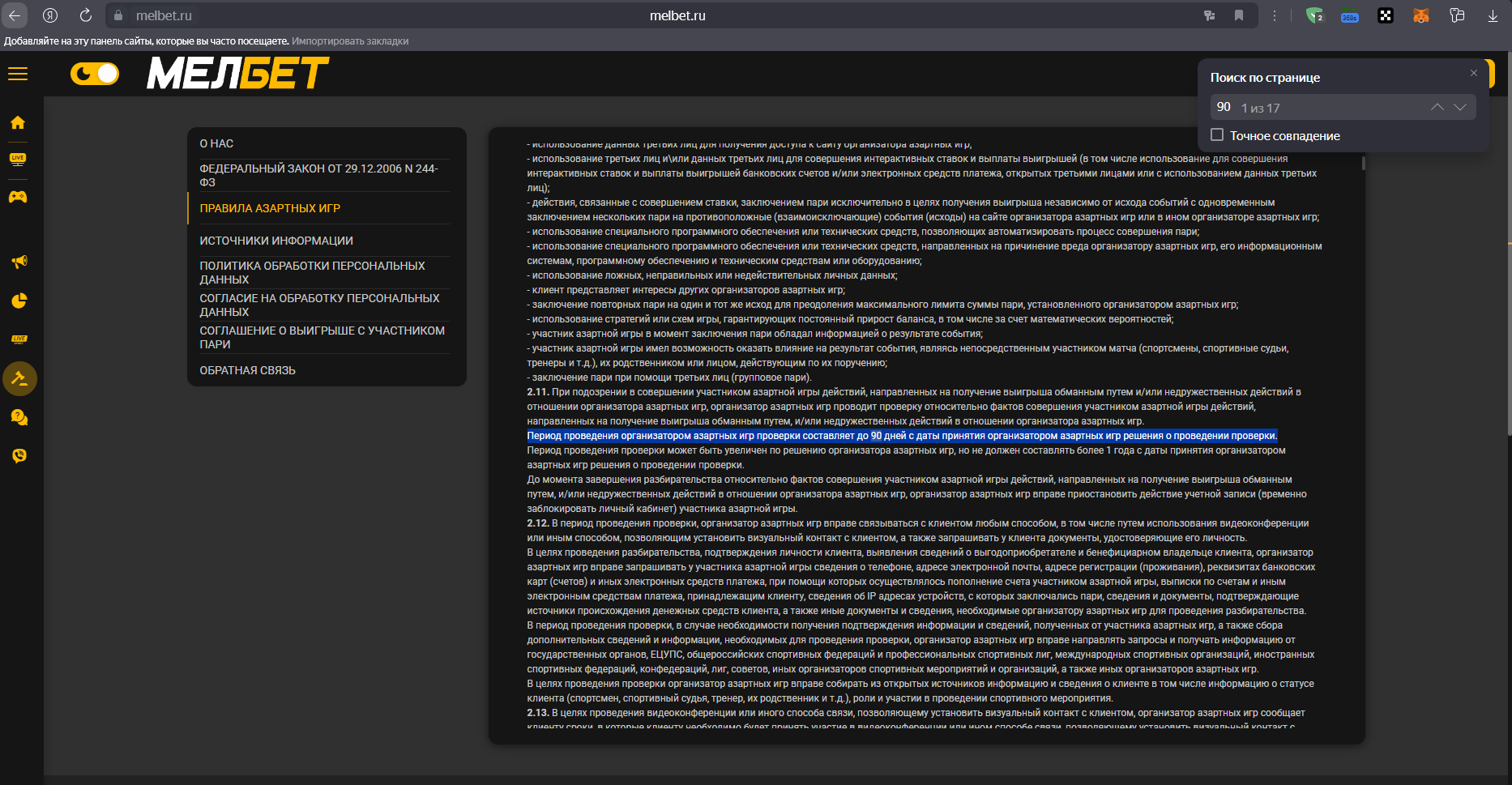 1 августа прошел видео верификацию спросил сколько ожидать рассмотрения, сказали около 90 дней, но у них же написано "Период проведения организатором азартных игр проверки составляет до 90 дней с даты принятия организатором азартных игр решения о проведении проверки." на почту мне написали, что 90 дней с момента видеоверификации, представители мел бет, вы же хорошая бк, зачем вы так душите игроков, сколько денег я у вас оставил, тут получилось выиграть и вот так...