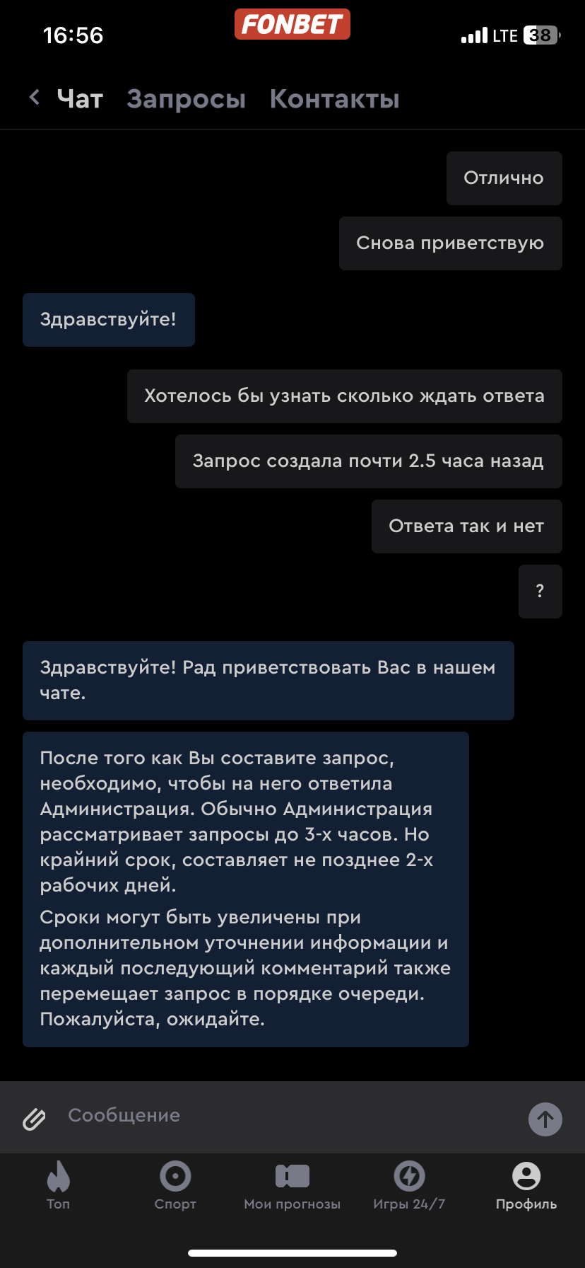 Добрый день Мусолят с самого июля В июле закидывала деньги на фонбет , ушла в плюс , хотела вывести и никак Не было доступно ни пополнение счета ни вывод средств Написала в поддержку фонбета Сказали какие фотографии нужно предоставить- сделала После этого сказали ждать неделю , подождала , затем еще две недели - подождала , еще неделю и видеозвонок это отдельное искусство , чувствуешь себя как на допросе , я не помню что сегодня ела а там спрашивают такие вещи которые особо и не запоминаются, ну суть в том , что прошла я этот видеосозвон и ко мне потом были претензии по поводу того что общаюсь с ними в чате не я , ставлю не я , и вообще ***** пойми в чем меня начали обвинять , назначили дату снова , отправила все фотографии и опять ждать уже до середины сентября Прошу помочь разобраться в данной ситуации Какой смысл от этой бк если она не выплачивает никому деньги Они не понимают что вот так морозить людей им самим не выгодно? Они так теряют клиентов и лутают себе плохую репутацию