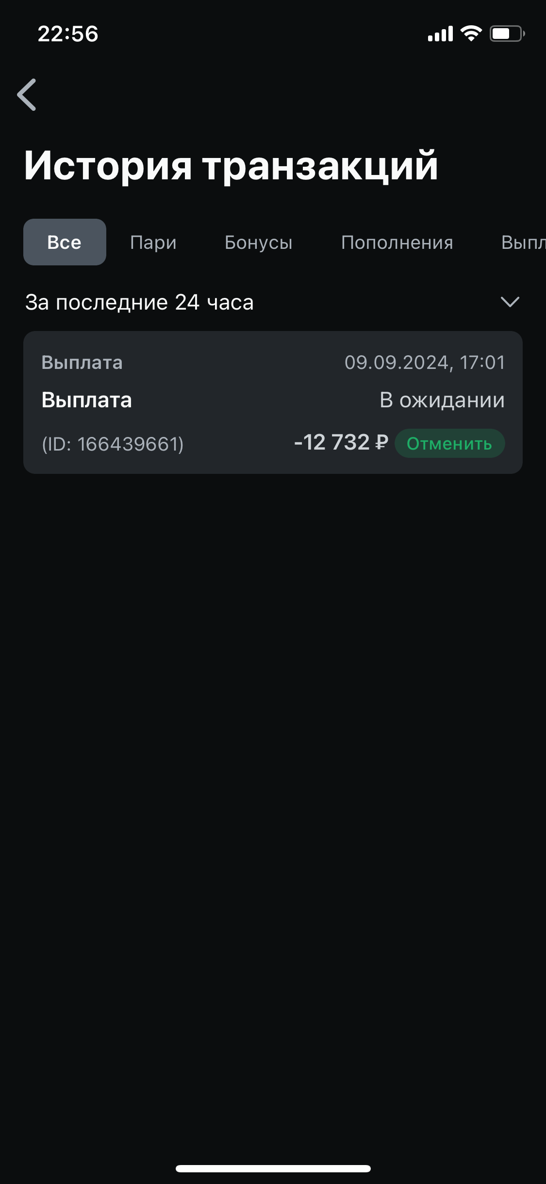 После того, как написала сюда отзыв, пришло оповещение на электронную почту, чтобы прошла верификацию онлайн, предоставили 3 даты, в которые я буду либо в самолете, либо заграницей в отпуске, где роуминг, разница в часовых поясах, и возможно, не будет возможности выйти на их проверку. Попросила в виде исключения пройти ее сегодня в любое время или завтра, так как хотелось бы получить свои денежные средства до вылета в другую страну. Почему в виде исключения, потому что они первые нарушили сроки проверки личности, Если бы она была завершена в срок, а именно 24.08., то я бы успела до Отпуска пройти их проверку, но они в срочности Моей отказали, объясняя, что все даты и время заняты. Мы общались в чате ОколО часа, этим временем уже давно бы прошла их верификацию. Честно, отвратительная контора, уже скорее хочется пройти их проверку, хотя не сомневаюсь, что они посодействуют мне ее не пройти, и удалить приложение, и больше никогда им не пользоваться, с конкурентами-букмекерАми таких проблем нет