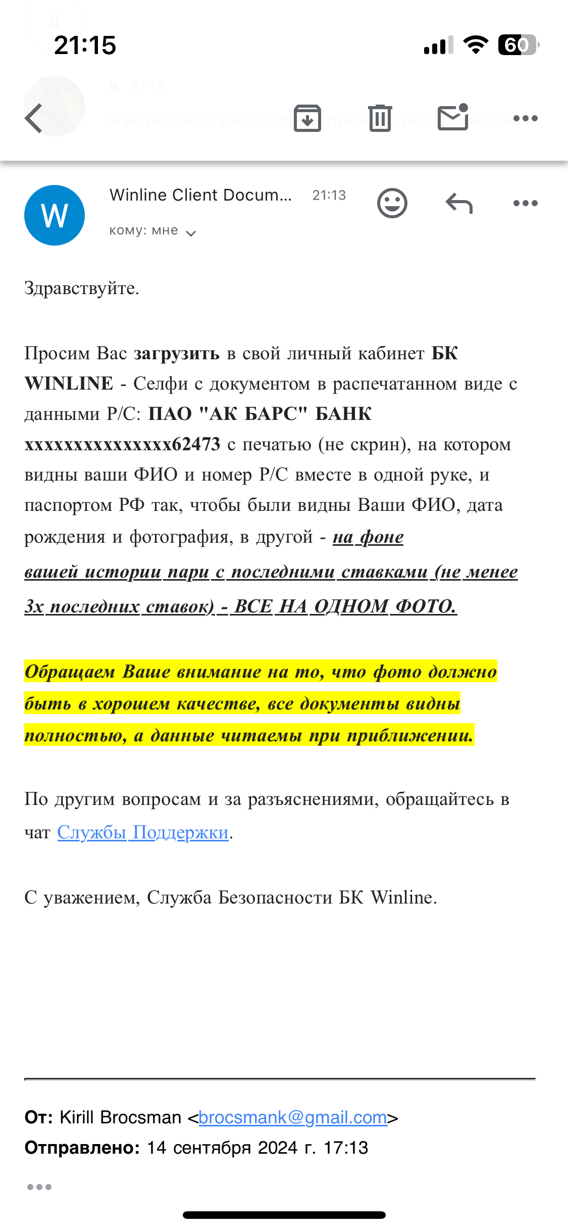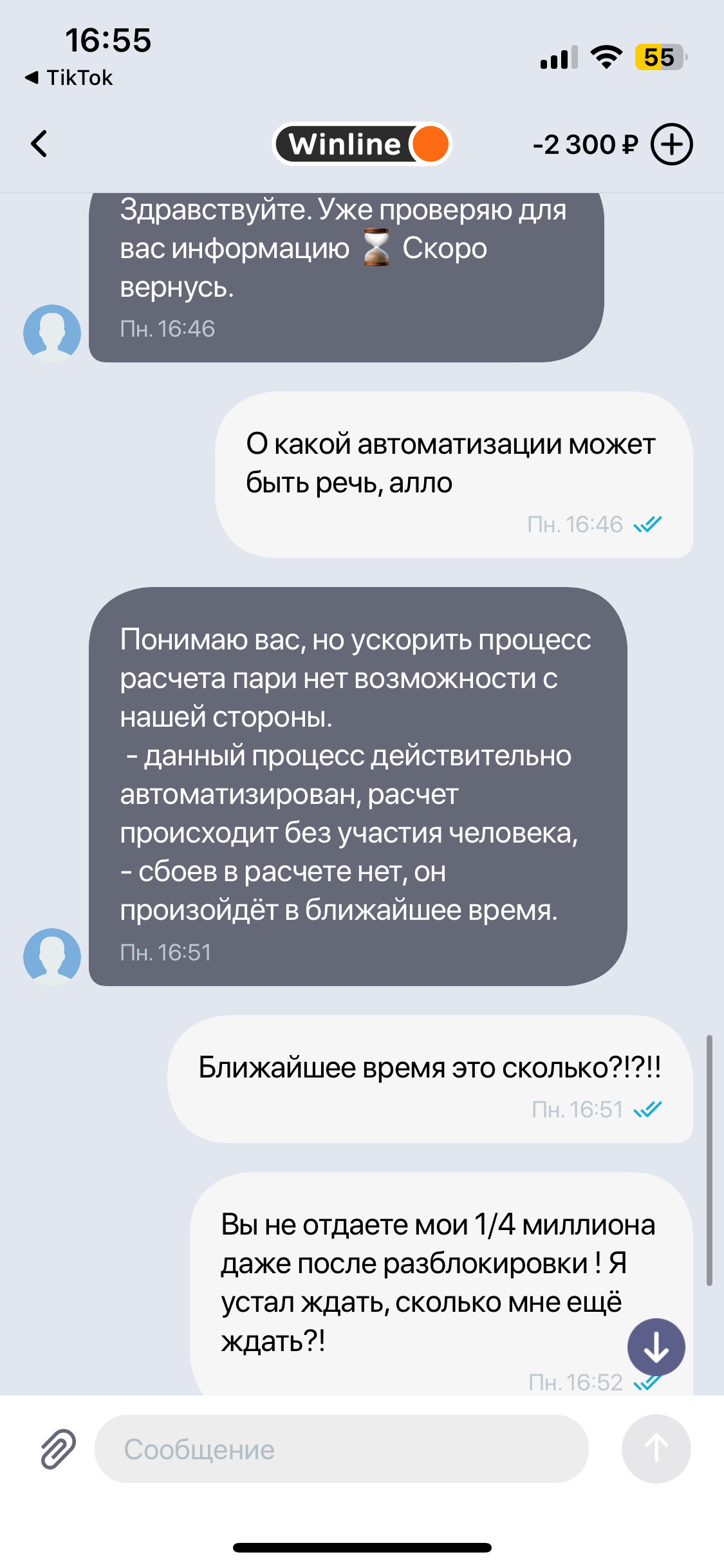 Сделали возврат ставки! Но при выводе на расчетный счет - выдает ошибку и просит использовать другую карту) они буквально не дают мне забрать деньги. Винлайн говорит - виноват цупис, цупис говорит виноват - винлайн. Что за глупые ограничения, счет мой, делал через него депозиты.