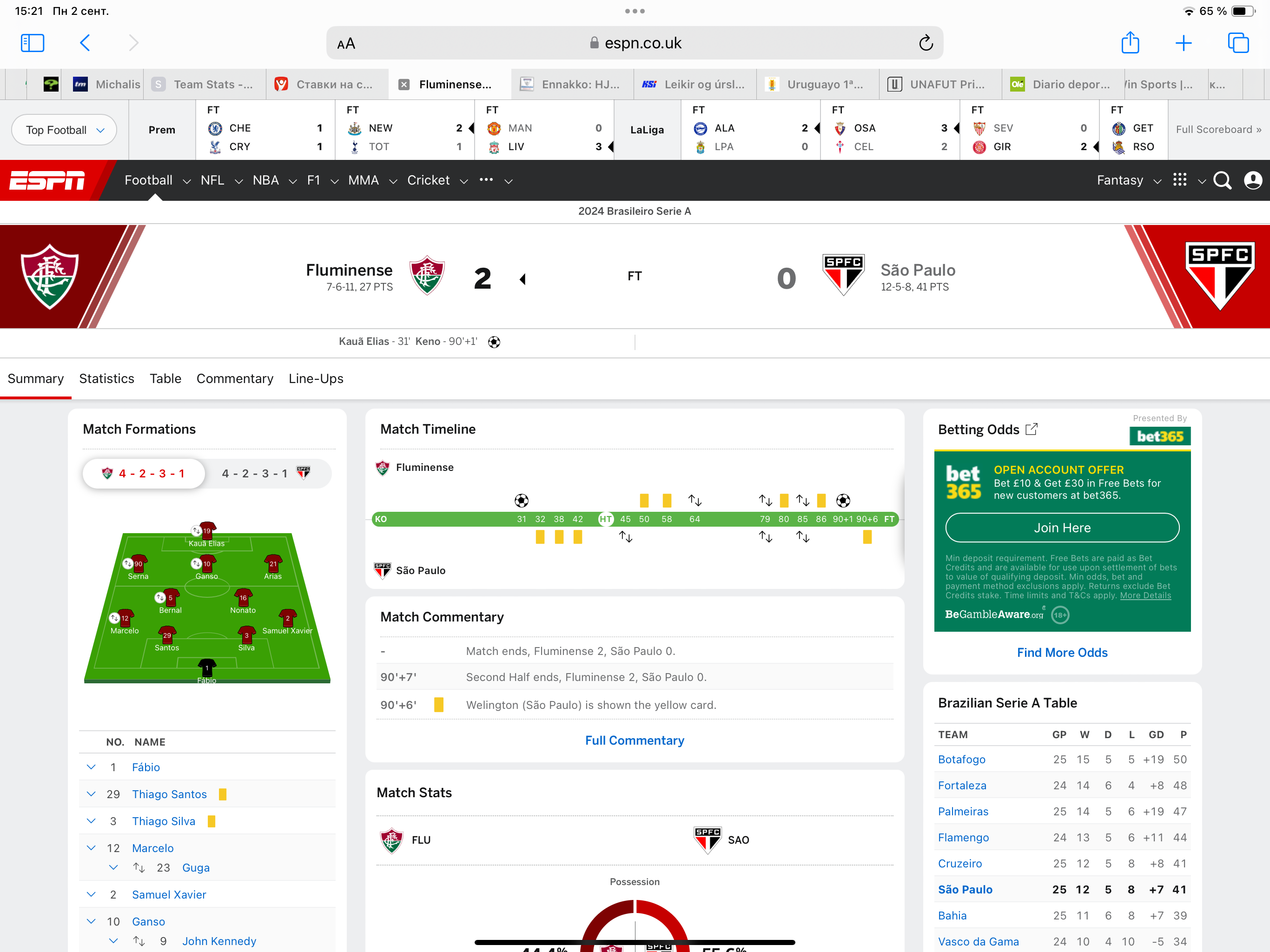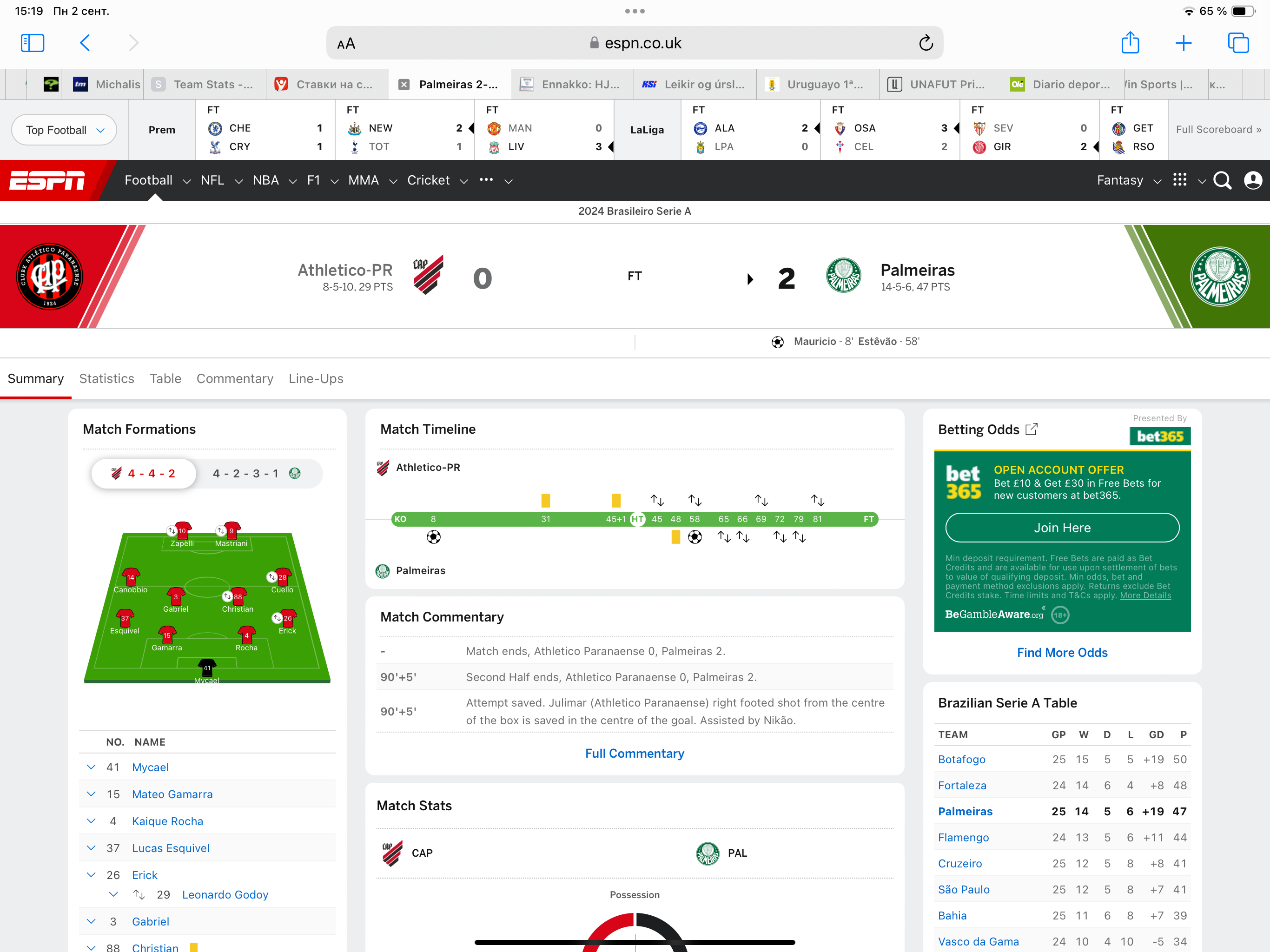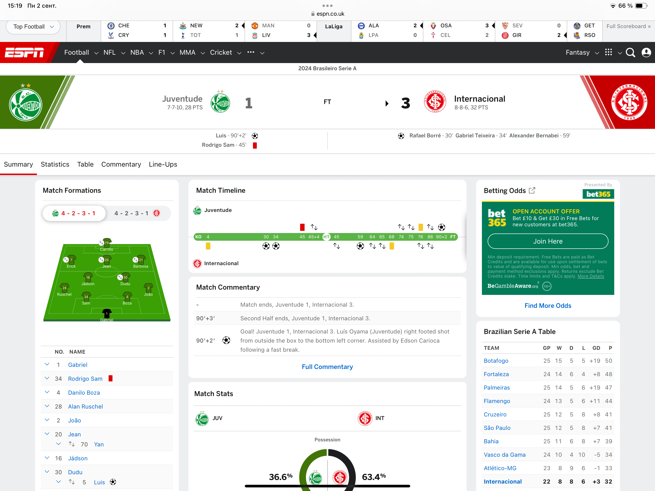 С ESPN скрин я уже прикладывал, еще прикладываю со Статс Перформ и с флэшскора.