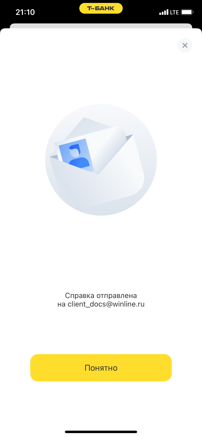 Здравствуйте. Попробуйте полученный от банка документ переслать со своей почты на client_docs@winline.ru Только не новым письмом, а именно переслать полученное от банка. И добавьте туда ваш номер телефона.