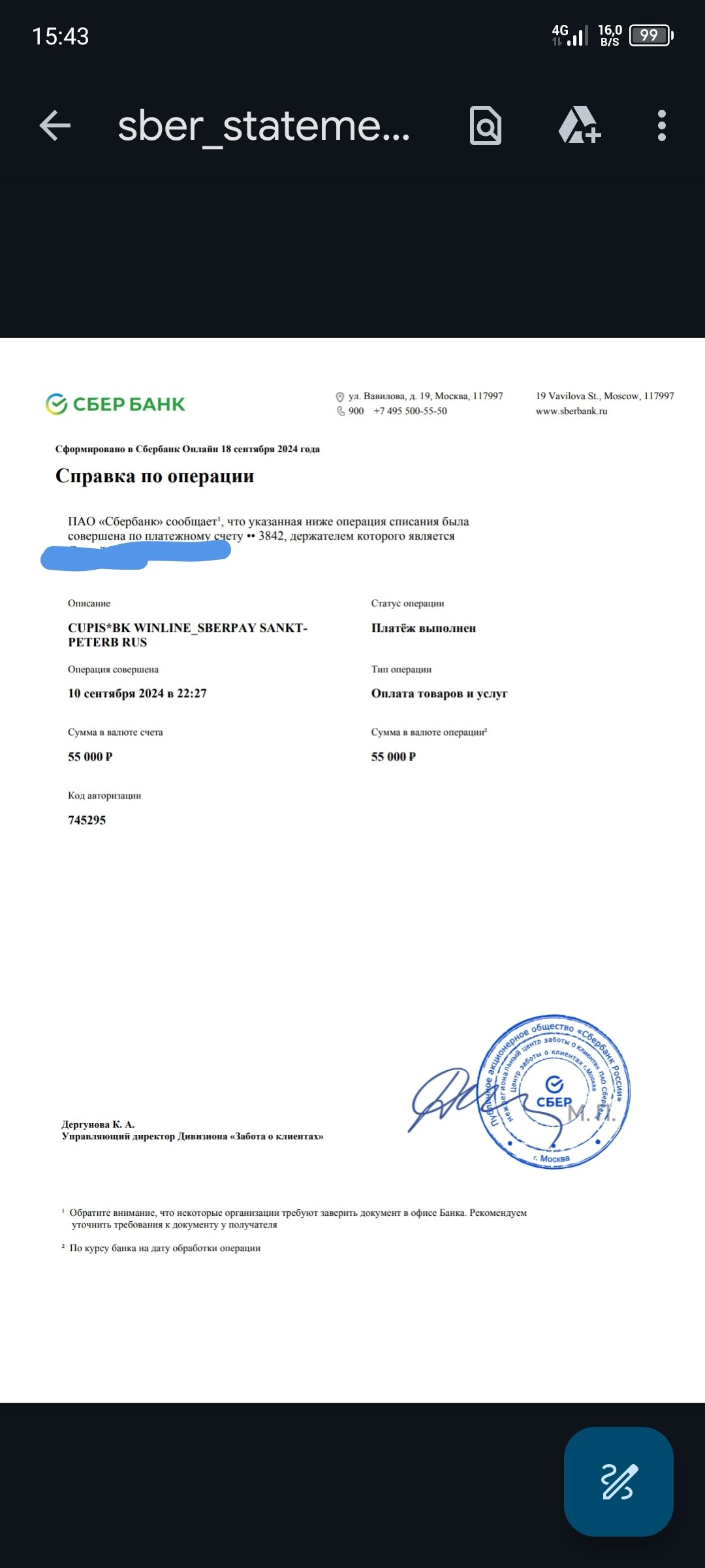 Здравствуйте. Помогите решить вопрос с отклонением выигрыша. Выиграл приличную сумму. После чего поставил её на вывод. Тут же произошла блокировка аккаунта. Прошёл верификацию. Поставил снова на вывод. Вывод отклонили и стали запрашивать документы по почте( client ) почте. В итоге дошли до запроса на дукумент об использовании банковской карты. Ходил в банк. Сказали такого документа нет. Только платёжный счёт. К которому привязана карта. Документ сфотографировал и отправил. В итоге запрос на документ висит. Вывод на карту, расчётный счёт, кошелёк цупис постоянно оклоняються . До службы поддержки не дозвониться. Спасибо.