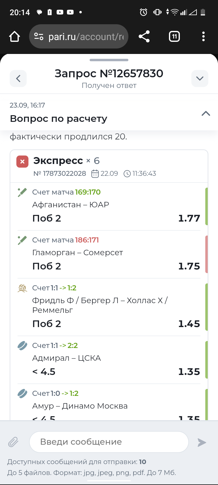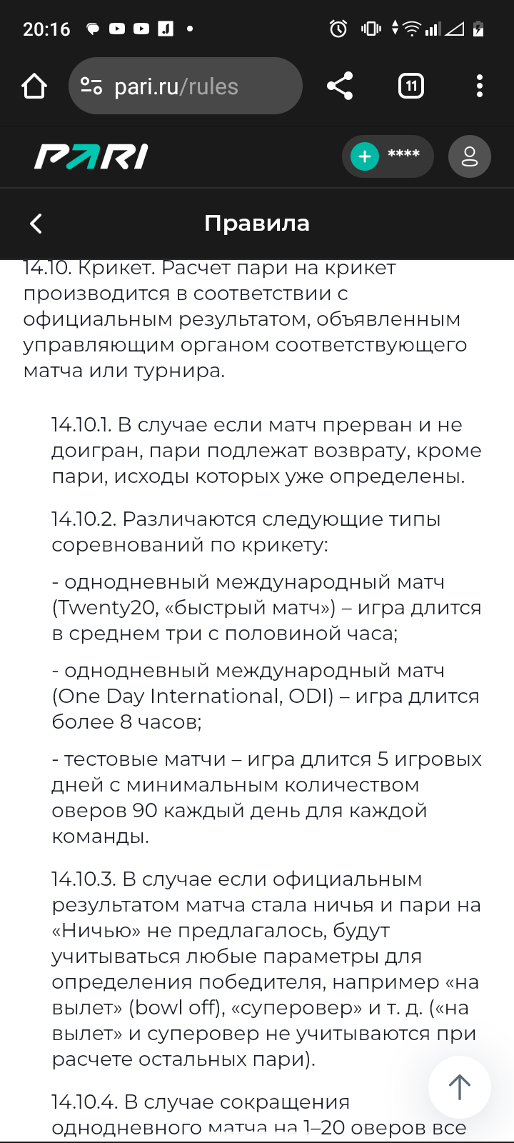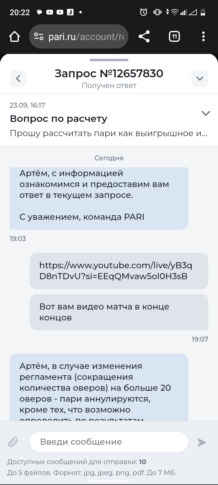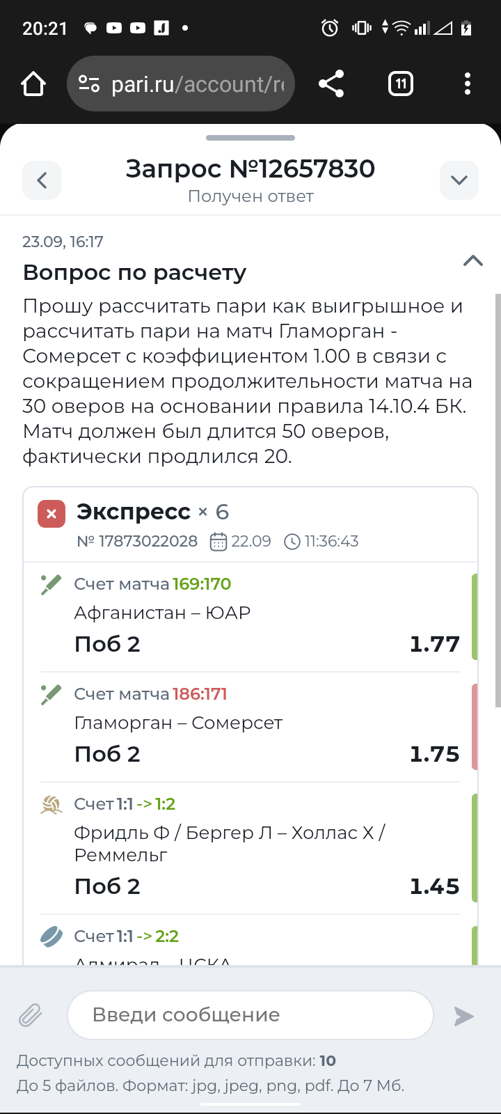 Из этого ответа, я делаю вывод, что БК "Пари" соглашается с тем, что матч был сокращён на 30 оверов.