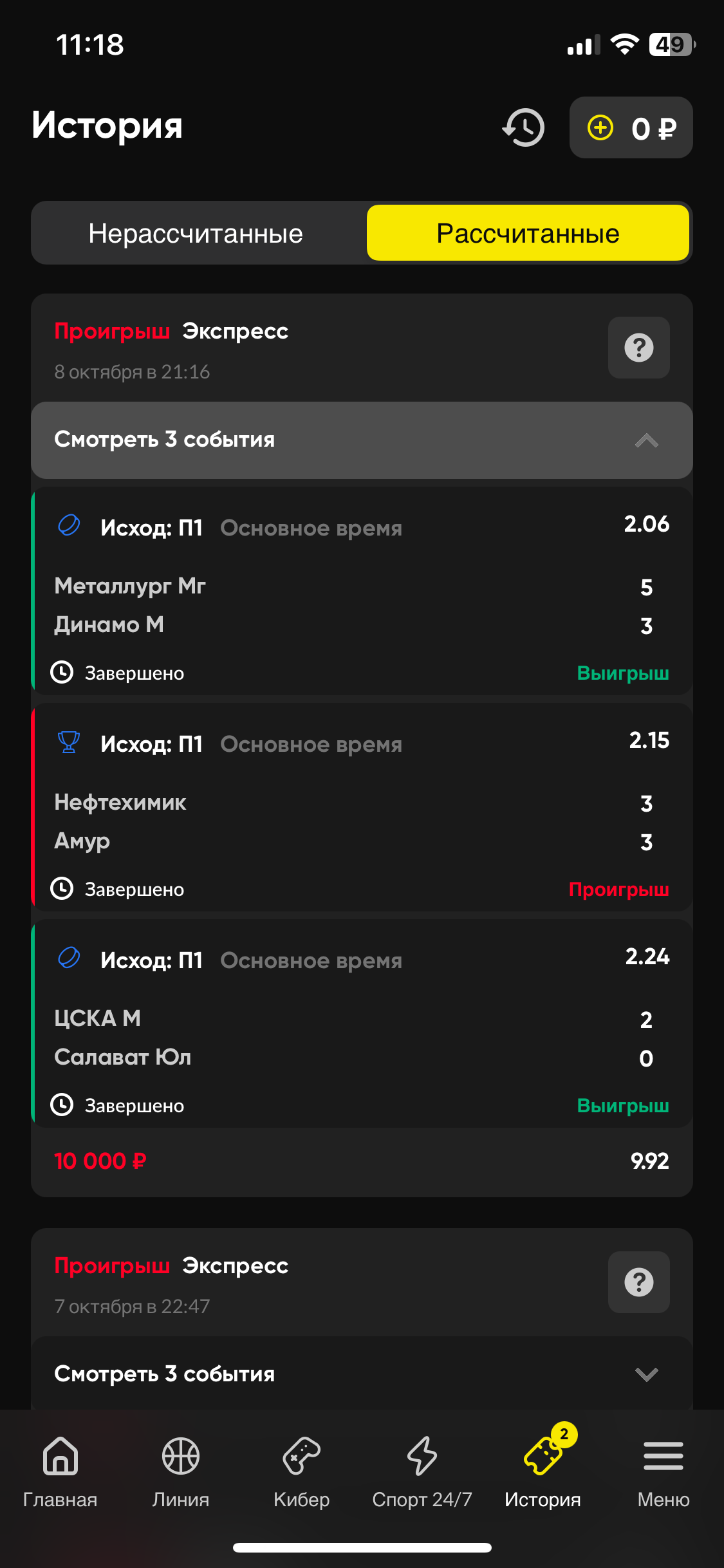 Ставка пересчитана на выигрыш.