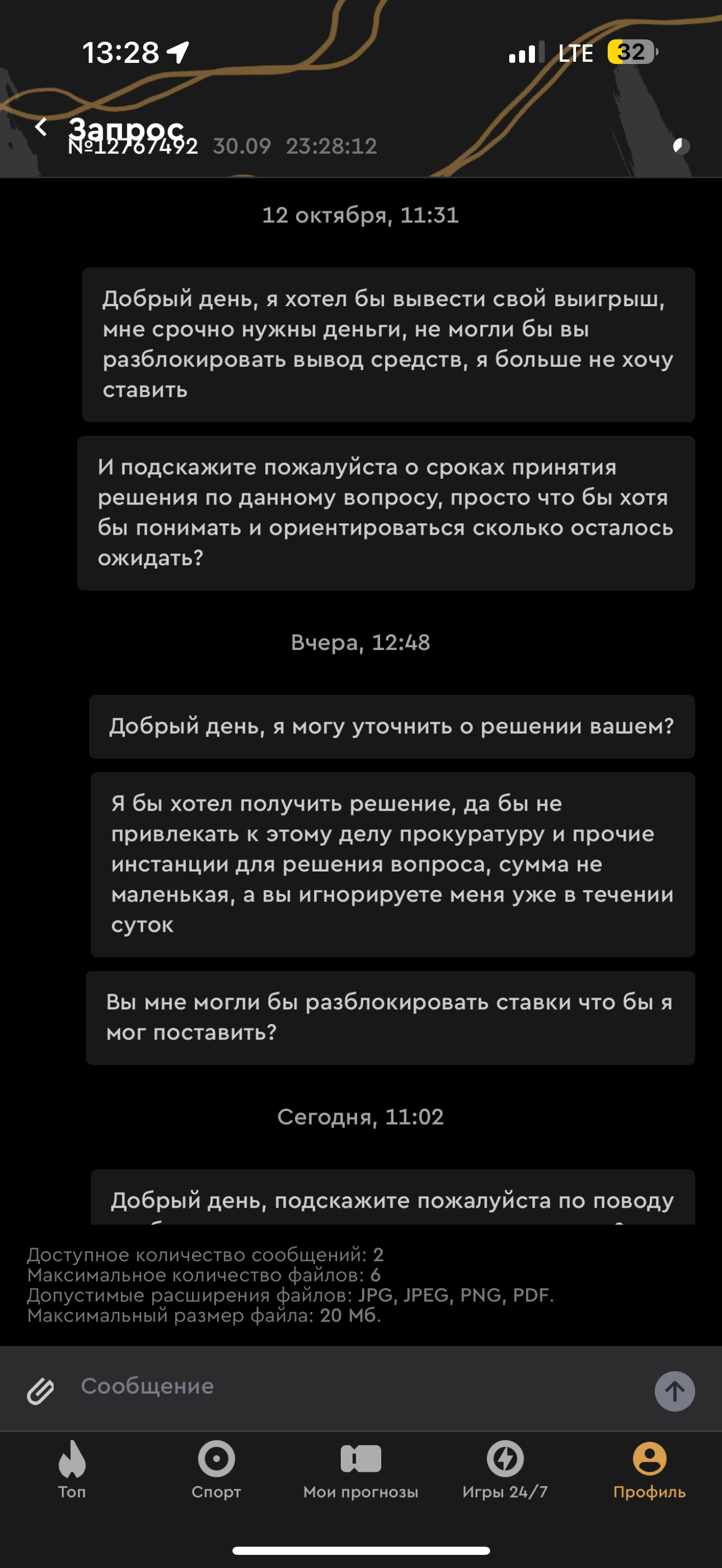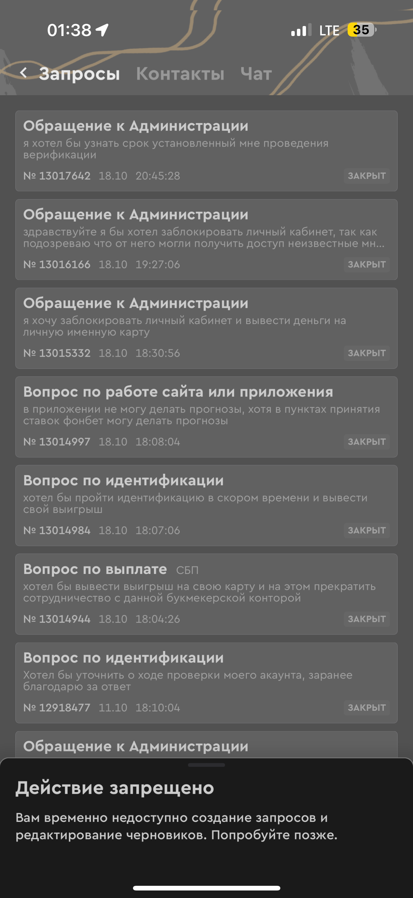 Теперь букмекер вообще запретил обращаться к ним, т.е. создавать обращение