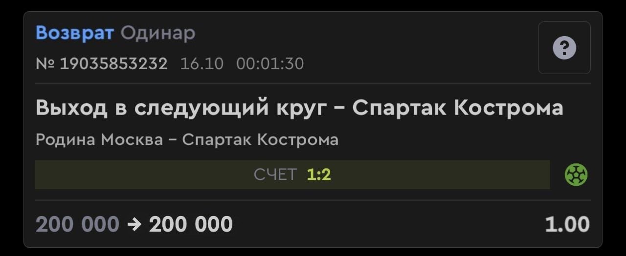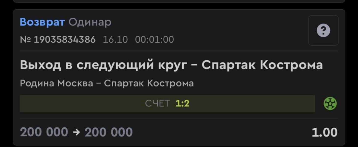 Сделал ставку до матча , событие завершилось с выигрышным коэффициентом , но мне сделали возврат по ставке с моей суммой!как решить проблему ?