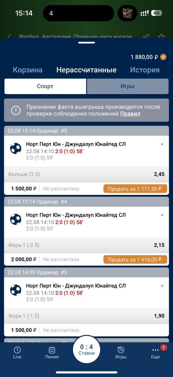22 августа ставил на событие Норт Перт ЮН - Джундалуп Юнайтед заработал с этого матча около 15-20к, потихоньку лесенкой проверял форы и тб, после данного матча заблокировали аккаунт на 60 дней сегодня захожу баланс обнулен до 6к - сумма заводимых средств, поддержка сообщила, что ссылаясь на какой-то там пункт мы имеем право обнулить ваш выигрыш - чего ? какой смысл от бк если игрок начинает выигрывать и вся его проделанная работа основанная на анализе матча и все потраченное время просто обнуляется. Осталось пару скринов с данного матча, бк не дает посмотреть историю ставок, просьба помочь в решении данного вопроса