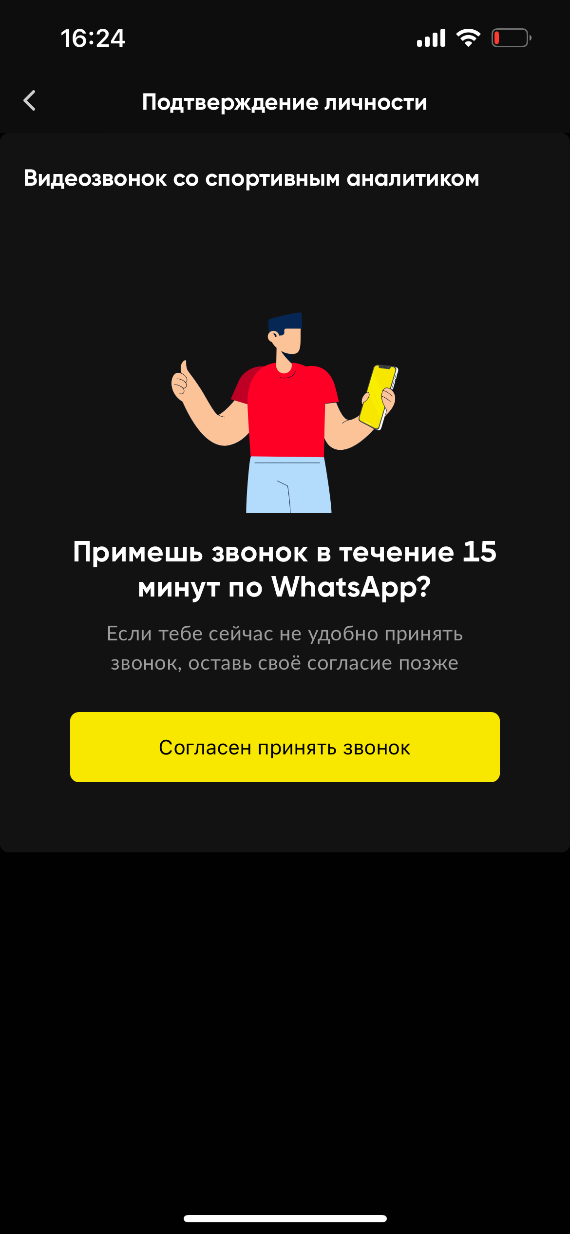 Здравствуйте. Вам нужно заказать звонок в ЛК. После этого вам позвонят на Whatsapp и зададут вопросы по вашему аккаунту. Ничего необычного в этом нет.