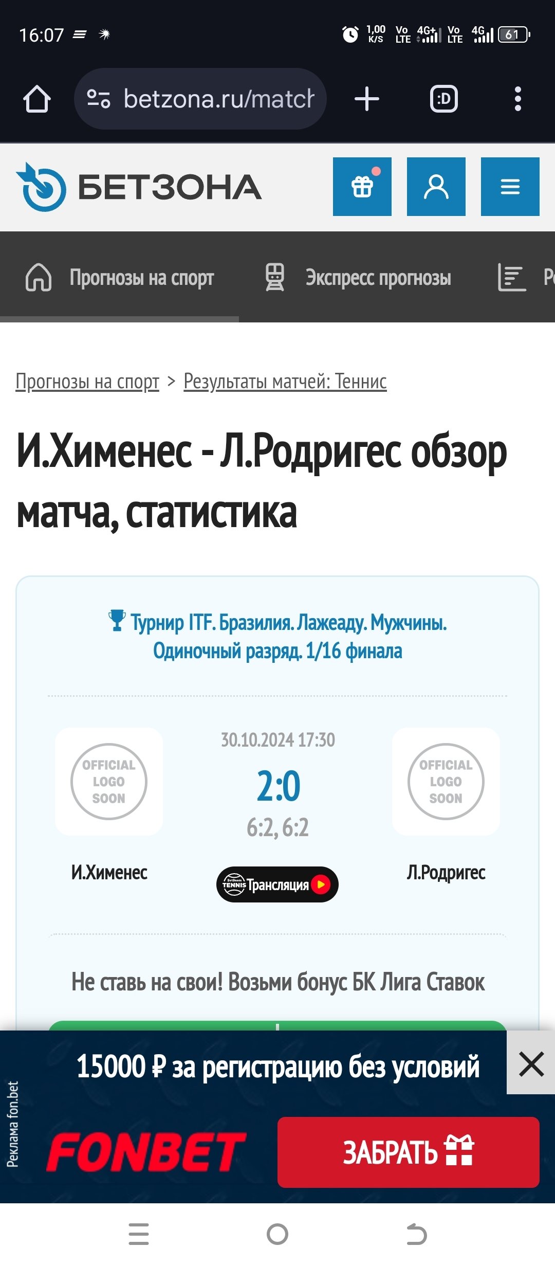 Я не про это. Вы написали, что в Фонбете вели лайв с 17:30. Есть какой-нибудь скрин подтверждающий это?