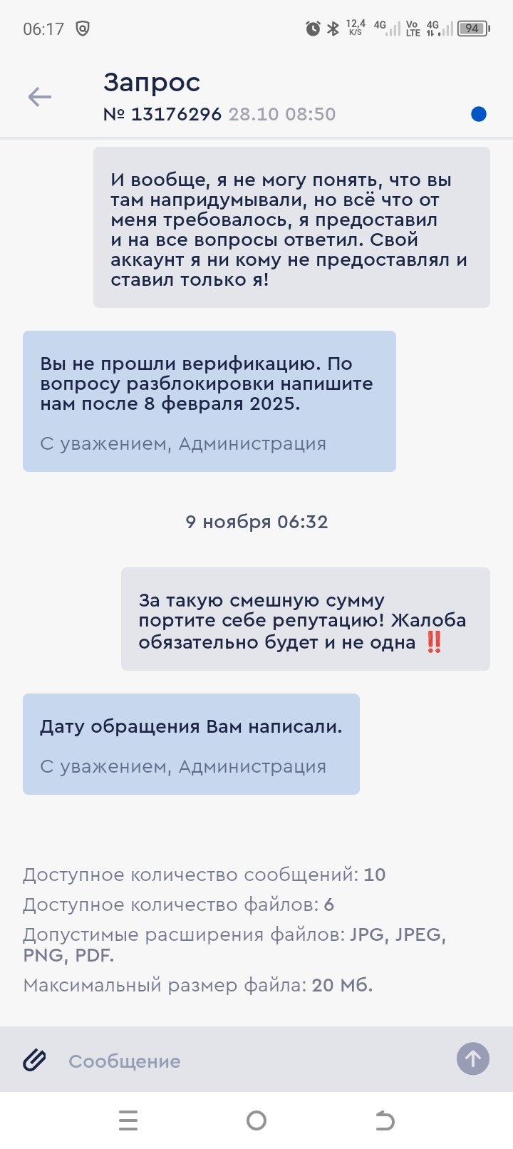 Здравствуйте. Играю с февраля 2024года. Имею випстатус. Ставки по 4000000 за четыре недели. Ставил в основном на хоккей одинарами. Иногда собирал экспрессы. В конце октября решил попробовать себя в кибербаскетболе. Стало получаться. Сумма на вывод смешная по тем меркам сколько я закидываю денег, а именно 38000. БК Фонбет посчитал это подозрительным и устроил вериф. Тянется это всё уже не первую неделю. Все документы, фото, карты и тп и тд предоставил. Была видеоверификация, которую прошёл максимально честно отвечая и предоставив опять же всё, что от меня требовалось. Вывод денег, так и не разблокировали. Не играть не вывести не могу. Администрация бк Фонбет конкретно морочит голову и тянет с выплатой. Все проверки прошёл. Очень прошу вас помочь разобраться в моей проблеме.