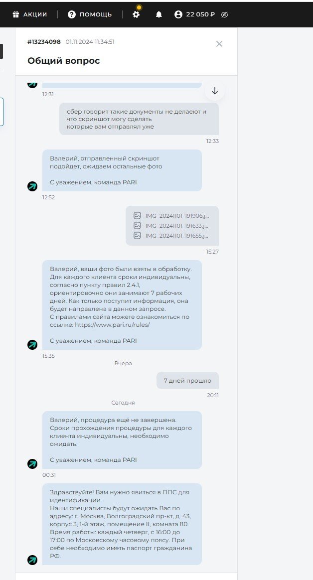 отправил фото, ожидание 8 дней, теперь явиться в ппс, там совсем сдурели? пусть вернут мой депозит в 90к и закрывают аккаунт