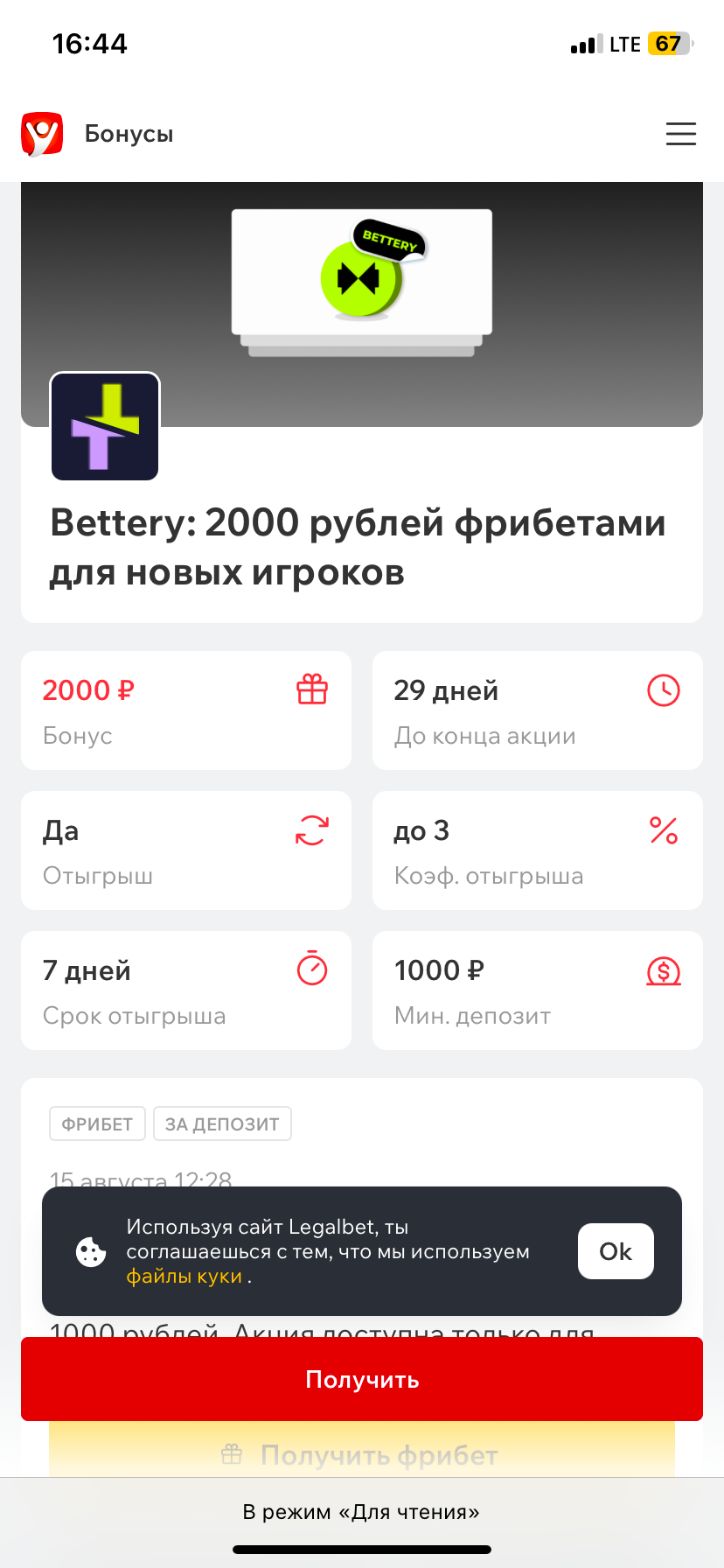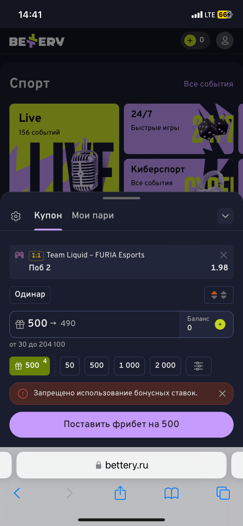 Зарегистрировался по бонусной акции в bettery, пополнил счёт на 1000 рублейДали фрибеты и запретили их использовать сразу же 😃