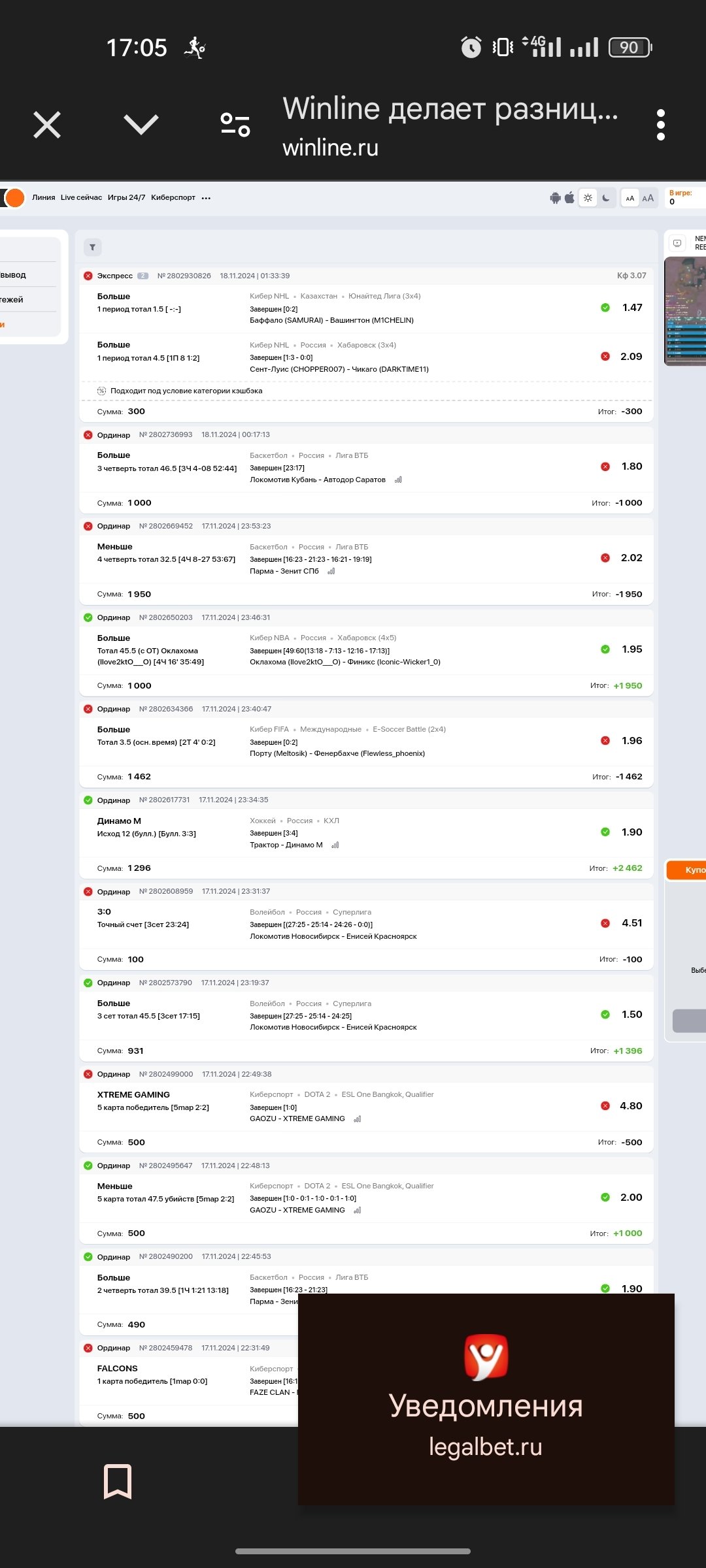 На момент ставки в 23:53:23 счет был 53:67 и время в оставшиеся в четверти 8:27. Спустя три минуты я делаю скриншот время на табло 8:16. Три минуты куда то делись , а открыв трансляцию там вообще оставшиеся время 6:07. И ставки то открыты на данное событие , если бы данная ставка была в мою пользу , как я убедился прочитав несколько десятков комментариев , то ставка бы сыграла как возврат , но почему , в случае фактической ошибки букмекера и их приложения , дело абсолютно не утмоем телефоне или интернете , с этим проблем у меня никаких нет , почему я должен нести убытки ? Просто признайте свою вину , верните средства , я ведь все равно с вероятностью более 80% проиграю , черная полоса идёт . Никто ошибку не хочет признавать , или ошибки эти идут только в счёт держателя аккаунта ??? Тогда вообще смысла не вижу продолжать играть на данной площадке. Ещё очень ниготивное впечатление осталось от поддержки виндайна , человека там просто не дождешься , а если и дождался , спустя сотню сообщений отправленных боту , то оператор просто кидает шаблонный ответ и отключается от чата