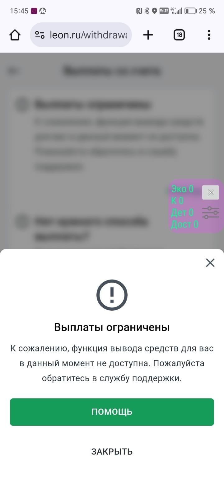 По информации от букмекера, счет заблокирован окончательно по причине неявки игрока на видеоверификацию.