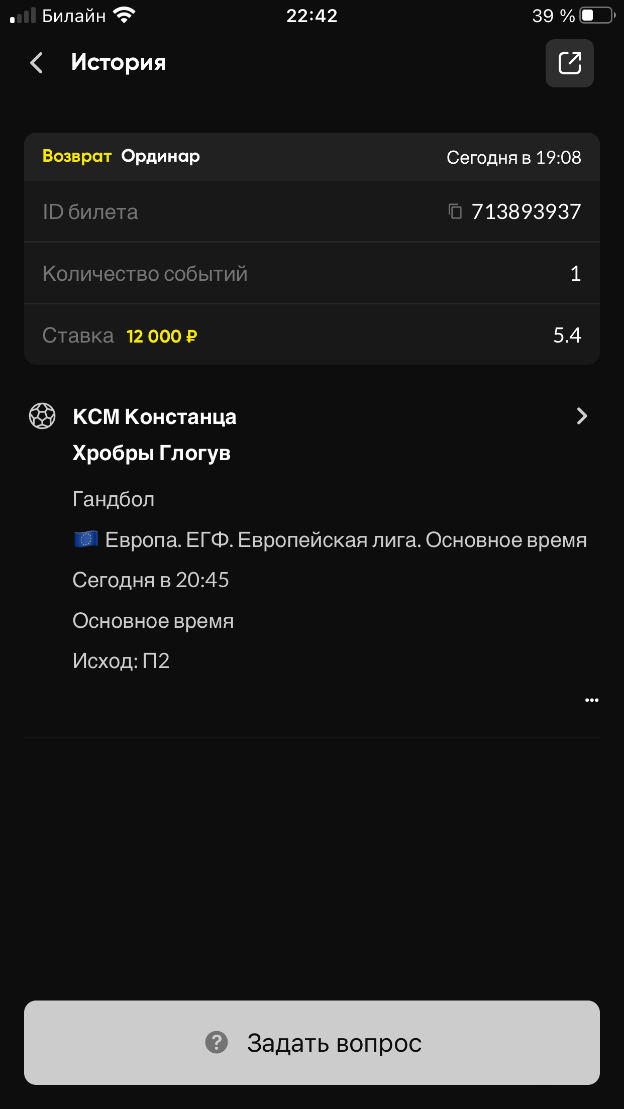 Здравствуйте, в бк бетбум была произведена ставка на матч по гандболу в лиге Европы. Ставил я на аутсайдера встречи и он победил. Данная ставка была рассчитана возвратом после чего я связался со службой поддержки и получил такой ответ: Данная ставка согласно такому то пункту правил носила договорной характер. При этом, отмечу, что матч игрался в Лиге Европы, а не в 3 любительской лиге Польши. В других бк данная ставка была рассчитана победой игрока. Только в бк бетбум она носит договорной характер и соответственно аннулированна. Помогите, пожалуйста, решить возникшую несправедливость по отношению к честному игроку бк!