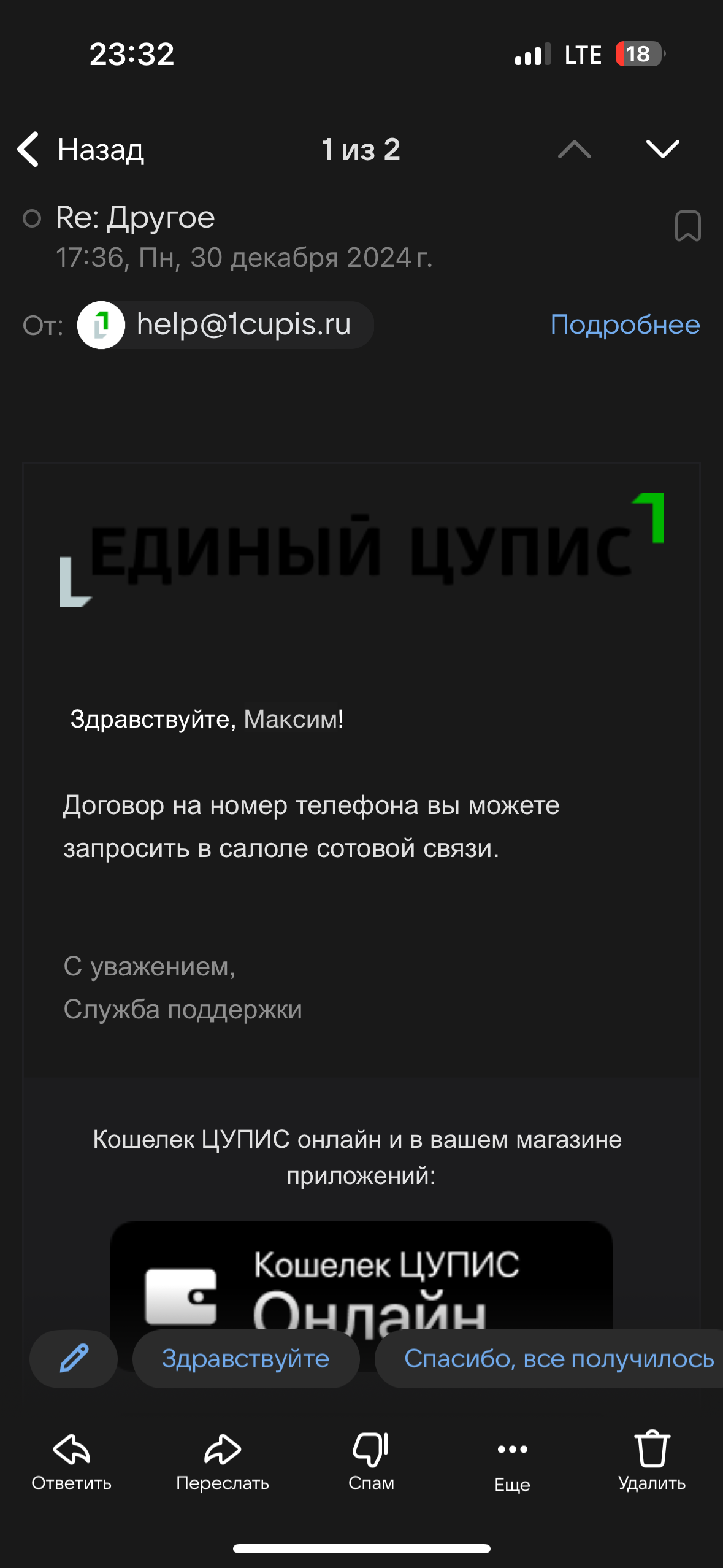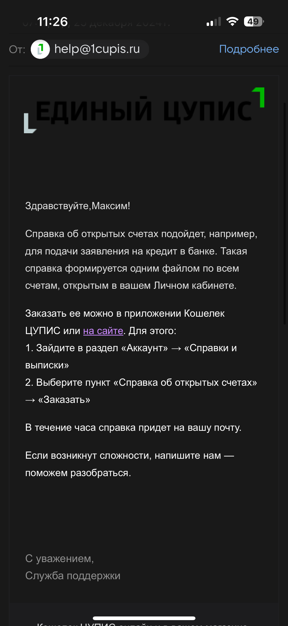 Покажите ваше сообщение и ответ от ЦУПИС, пожалуйста.