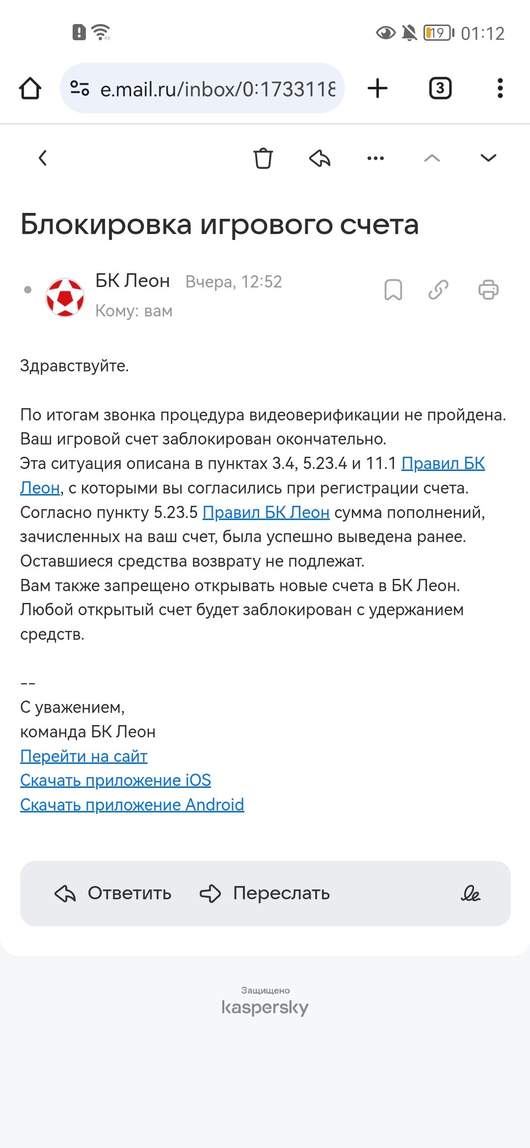 В указанных в письме пунктах правил содержится целый перечень нарушений, но ни под одно из них мой аккаунт не попадает. Более конкретную информацию букмекер не предоставляет.