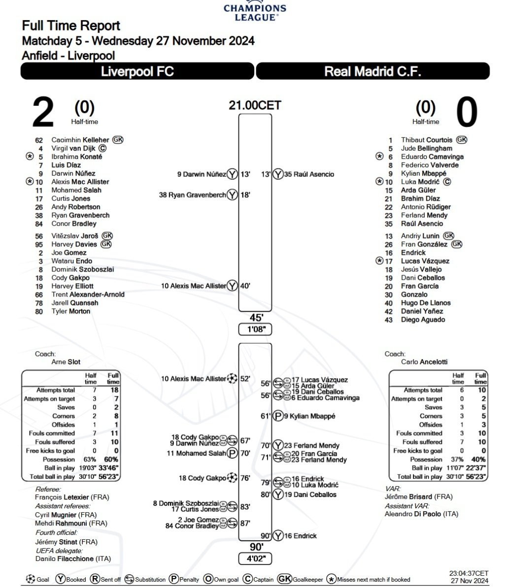 Нет никакой абсурдности. По правилам расчет производится по данным первоначальных протоколов. В данном случае по такому протоколу и произвели расчет. Эти протоколы могут корректироваться несколько раз. Разумеется, УЕФА не будет вывешивать всю серию этих протоколов, а просто каждый раз при корректировке заменяет старый на новый. Если вам там хочется, то я могу вам выложить протокол в пдф формате, как он и был изначально выложен на сайте УЕФА.