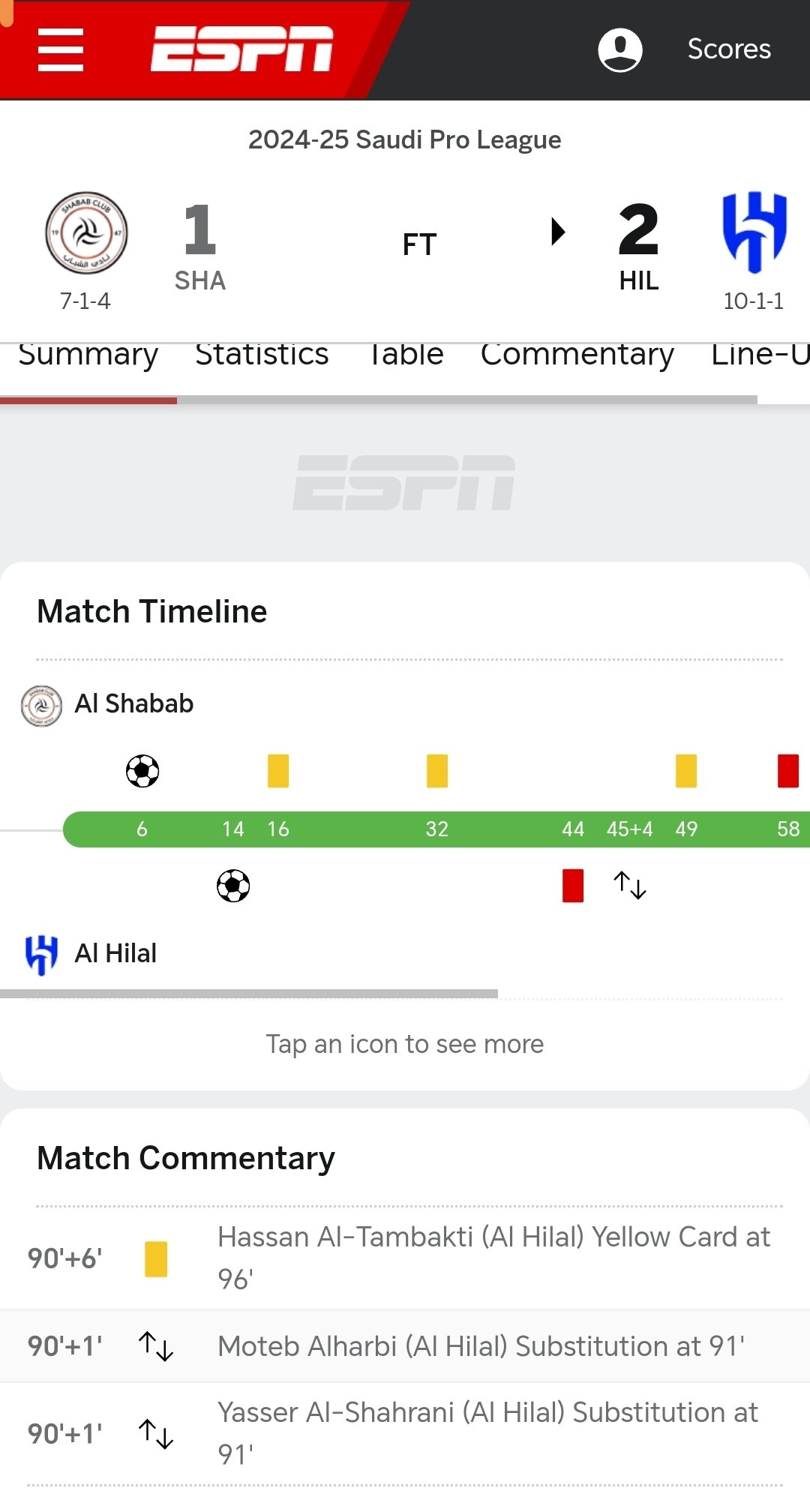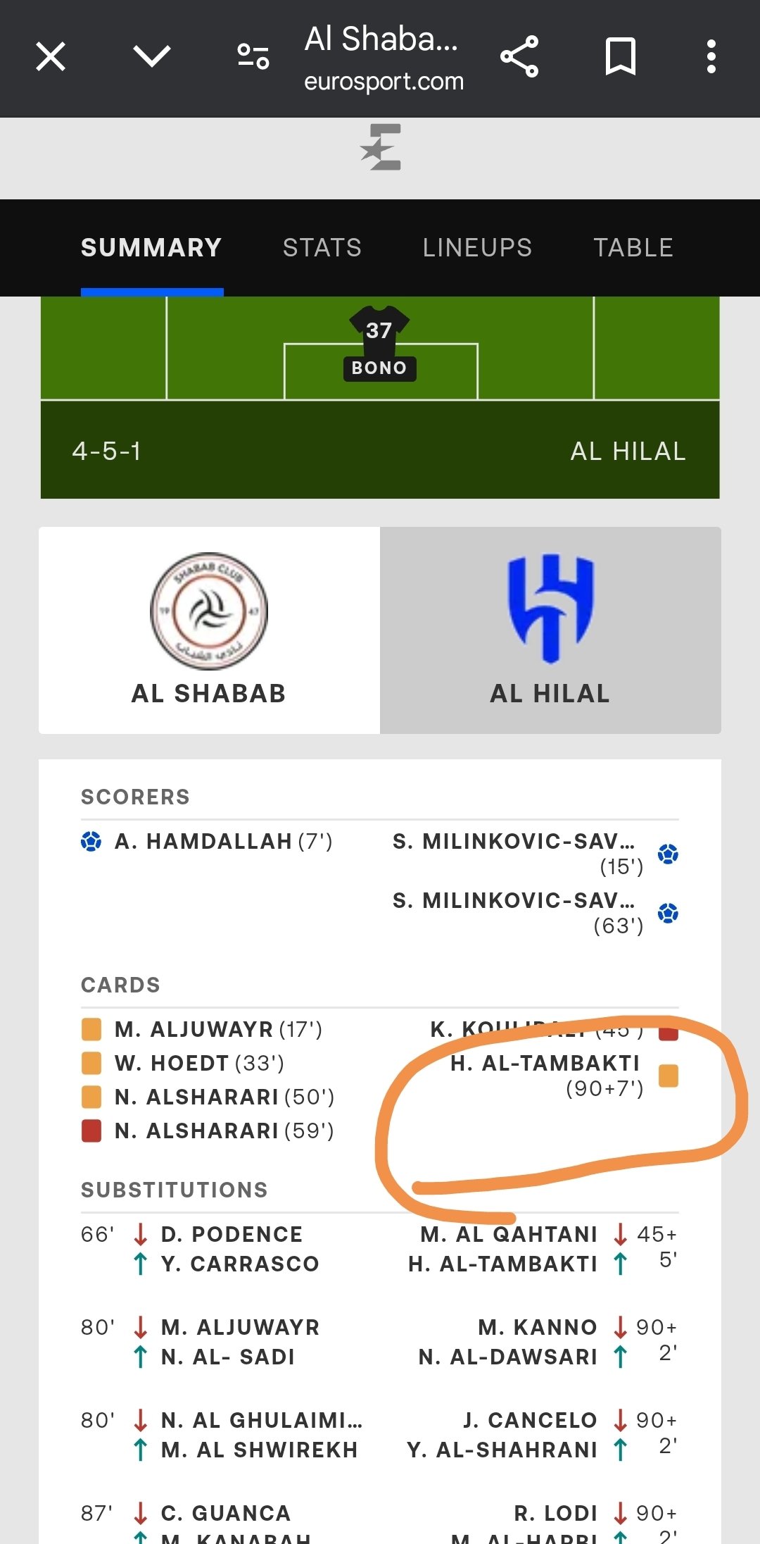 Была неправильно рассчитана ставка, тотал жёлтых карточек 0,5б(Аль-хиляль), на 90+6 жёлтая карточка была показана, это есть абсолютно во всех протоколах, когда обратился в бк с этой проблемой, мне ответили, что расчёт ведётся по трансляции, в которой этот момент не попал, видимо, что самое удивительное, трансляцию бк не предоставляет, но ссылается на неё, как такое может быть - не знаю