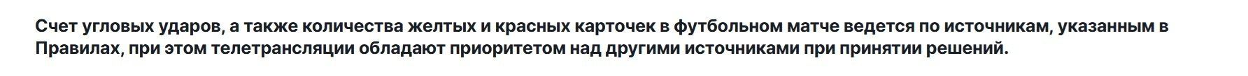 Понятно, но казалось, что жёлтые карточки-это не субъективный параметр, она либо показано, либо нет, в бк в линии не был указан источник жёлтых, я чисто в теории мог бы сидеть на стадионе, видеть, как показывают эту жёлтую, но так как она не попала в видеотрансляцию, бк её не считает, очень странно, потому что это необъективно