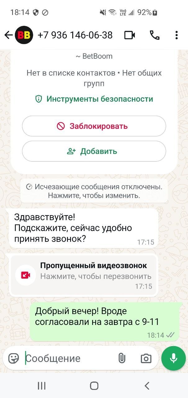 Можно ли обозначить время звонка? У меня есть свое рабочее время, не могу постоянно контролировать вотсап