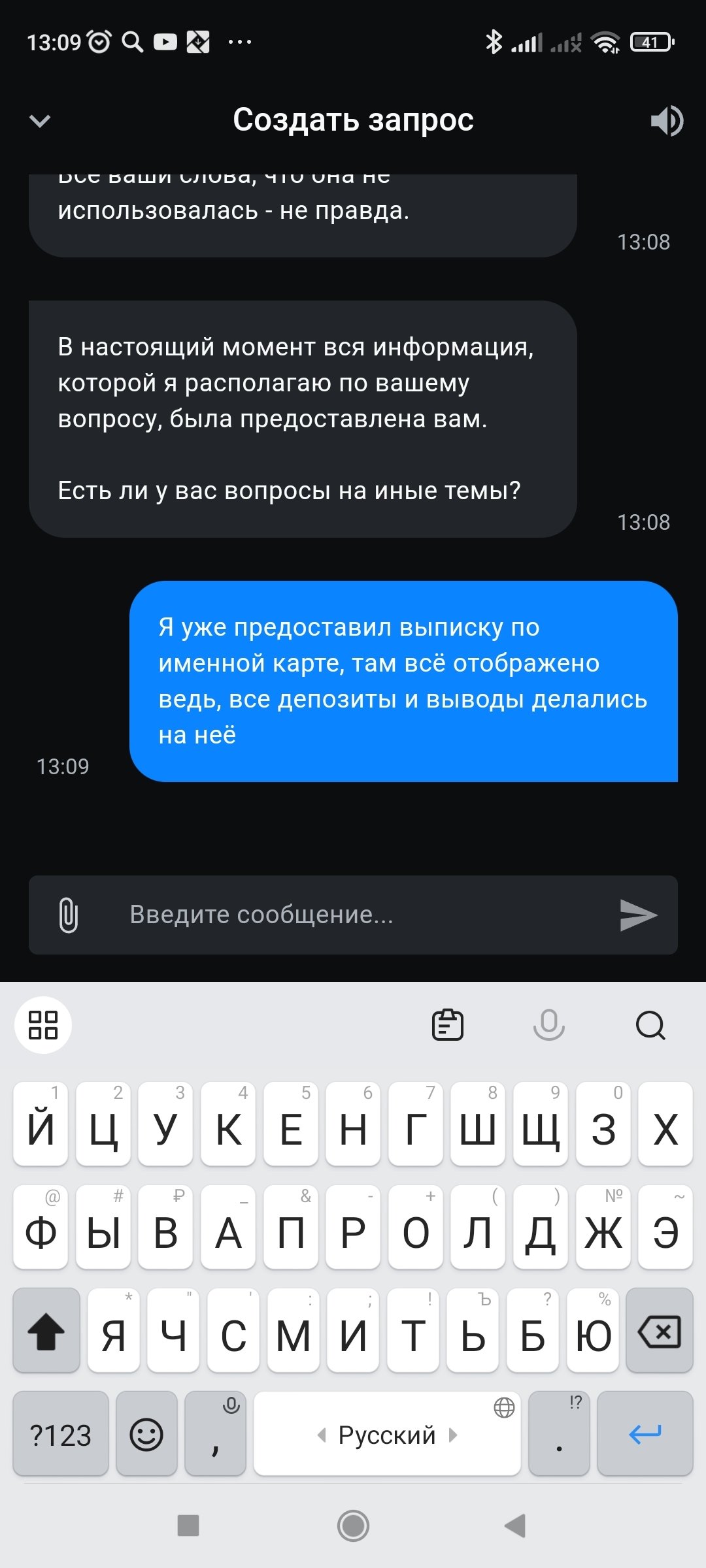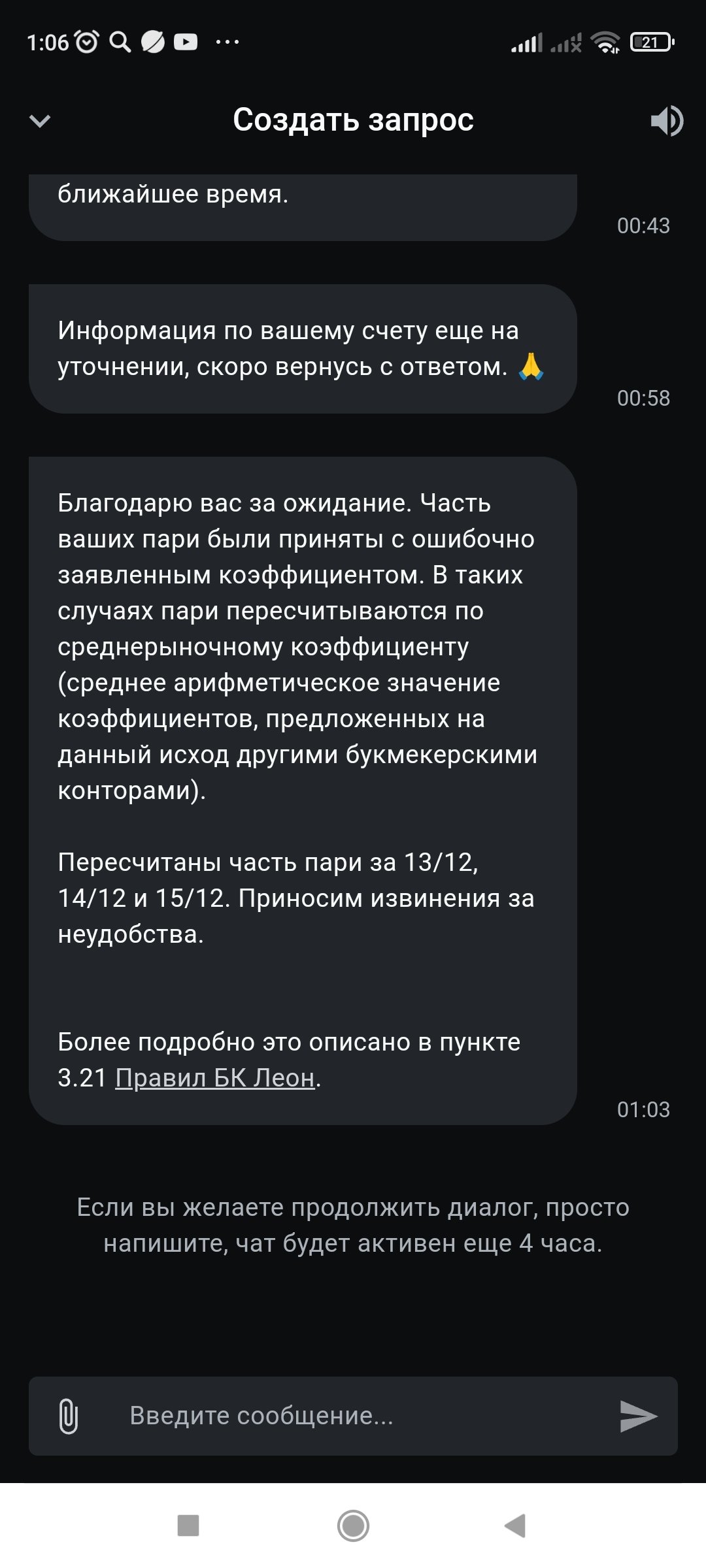 К цупису была привязана карта виртуальная, делал депозит с неё всего раз на сам цупис более месяца назад до этого случая, сам Леон с неё не пополнял. Выйграл сегодня не много в леоне. Сделал запрос на вывод средств, пришли сообщение о подтверждёнии личности - подтвердил. Решил сделать вывод, нажал на цупис карту случайно, а не цупис куда обычно выводил. Снова вериф на ту карту виртуальную которой давно нет, я её удалил просто. Запросили документы по двум, по именной предоставил по которой делал депозиты в Леон, а также приложил фото и выписки по карте за последние три месяца. Вывод отменён, денег на аккаунте теперь нет. Без подтверждения данных по той карте отказались продолжать диалог, хотя операций в этом БК по этой карте не было. Вот теперь думайте, стоит ли вообще играть в этой конторе. Была бы причина, чтобы не платить .