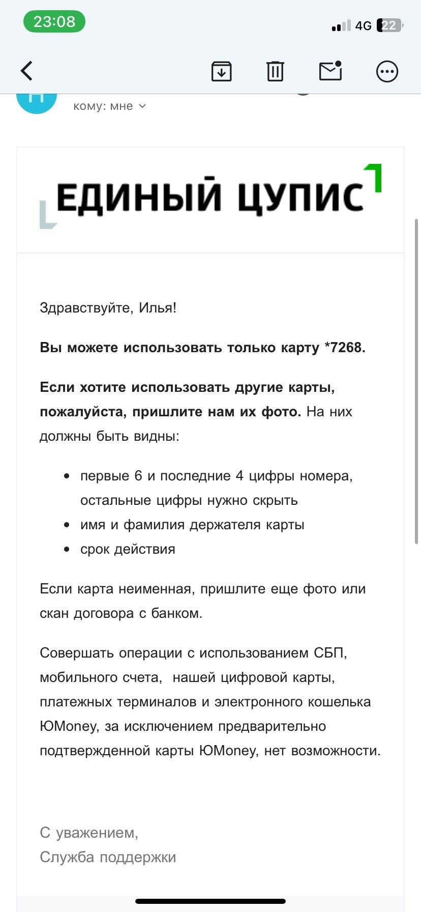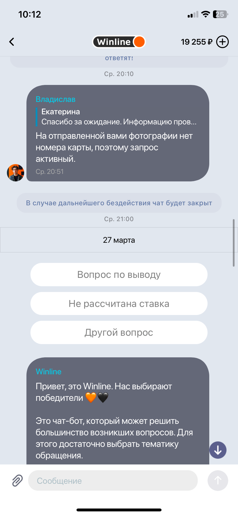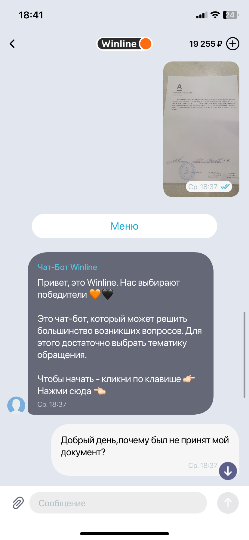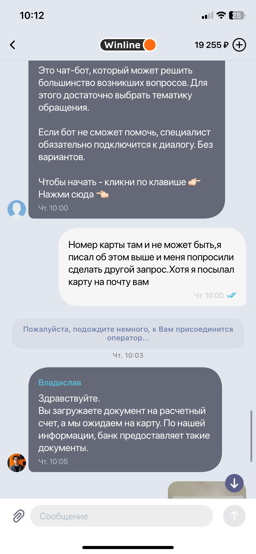 Добрый день,винлайн дает вывести деньги только через сбп и обязательно цупис! С недавних пор цупис мне написал,что сбп не будет мне доступен,но все также могу пользоваться банковской картой. Хочу попросить чтобы мне поменяли способ получить выигрышь через тот же цупис, но на банк. карту. Но после прохождения верификации, из чат бота пропала кнопка вызова оператора( в чат боте для моей ситуации ничего не найти), также писал на почту, но там сразу автоматический ответ который посылает тебя обратно все решать через приложение.Прошу помочь,скрины прилагаю.