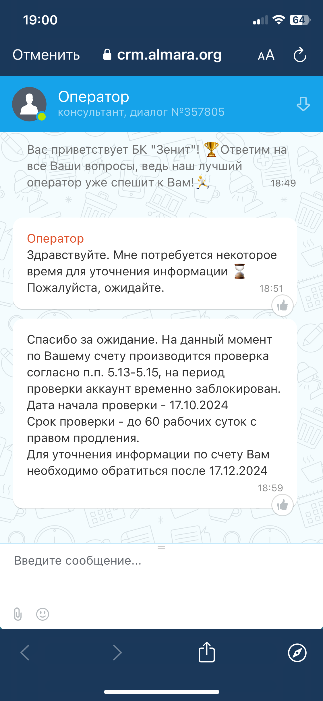 Здравствуйте, получил блокировку на вывод средств. Поддержка сослалась на то, что я нарушил пункты правил и рассмотрят это нарушение в течение 60 суток. Этот срок вышел, я попытался зайти в личный кабинет, но не смог так как его вовсе заблокировали по той же причине нарушения пунктов правил . Данные правила я не нарушал, о чем сообщил в поддержку, но ответа о том что я именно нарушил и доказательств я не получил.