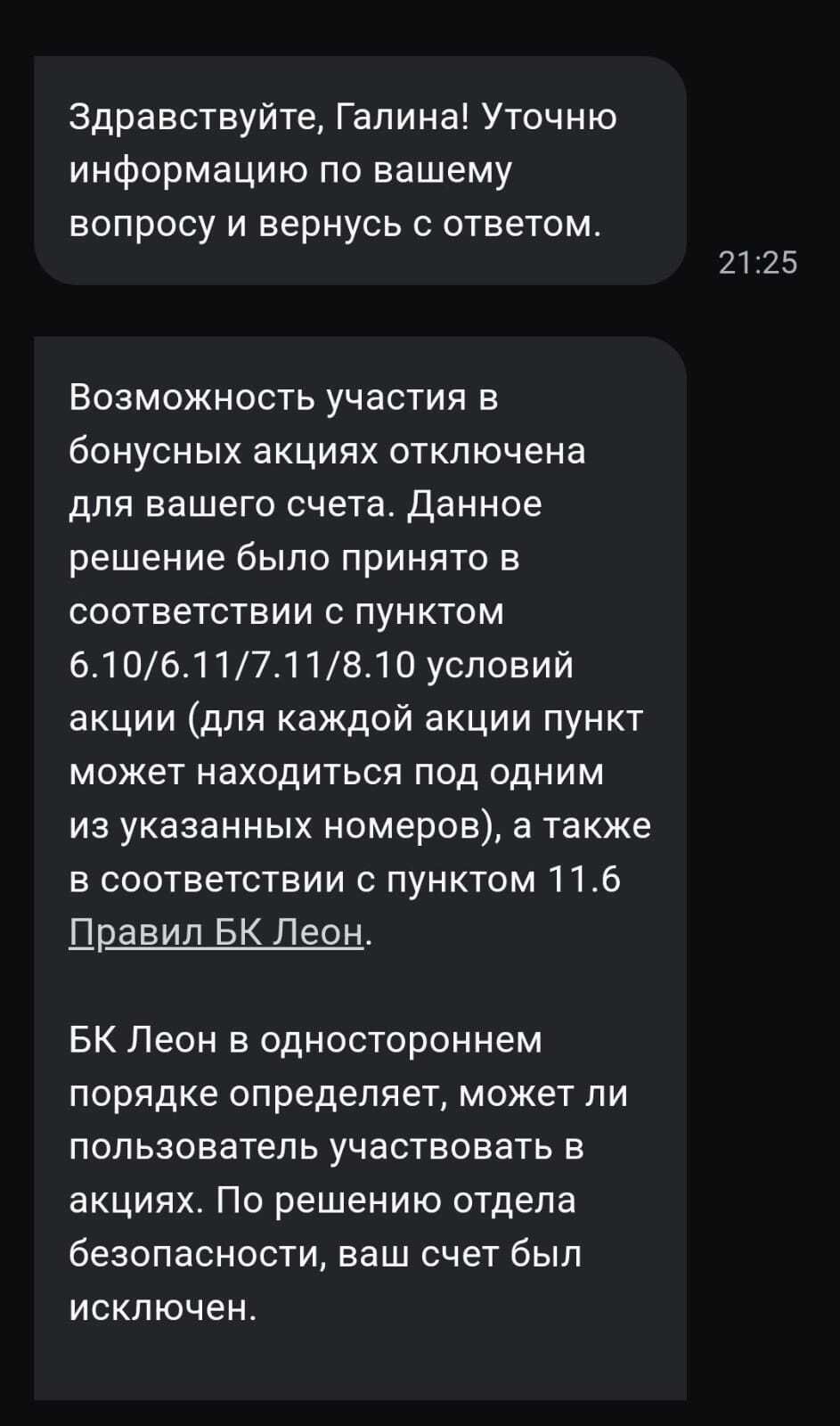 По информации от букмекера, бонусные средства аннулированы по причине нарушения правил промоакции. Открытому разглашению подробности не подлежат. Действия БК в рамках правил.