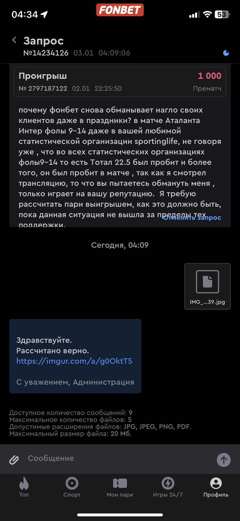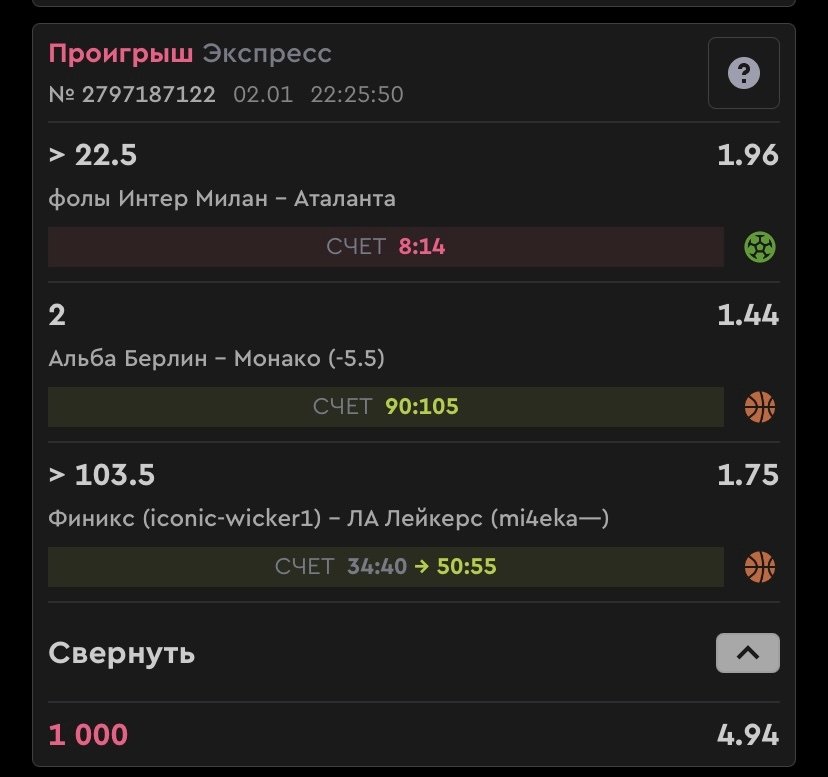 Всем доброго времени суток, уважаемые бетторы. Благополучно посмотрев матч Суперкубка Италии Интер-Аталанта , в котором было ровно 23 нарушения правил (фолов) 9-14 по всем статистическим центрам, даже в том, который за основу брали специалисты фонбет при рассчете фолов в данном матче , а именно sportinglife. Я не став заходить в приложение, понимая, что очевидно пари, а именно Тотал 22,5 больше фолов сыграло и благополучно лег спать, однако моему удивлению не было предела , когда зайдя в приложение в фонбет , они каким то невероятным чудом нарисовали 8-14 по фолам в данном матче и рассчитали пари как проигрыш. Я сразу отправился узнавать информацию о результате матча на всех статистических центрах интернета по данному матчу и вы не поверите, но везде было количество фолов 9-14 , вот везде честное слово, ДАЖЕ на ОФИЦИАЛЬНОМ САЙТЕ по которому вёл РАССЧЕТ по фолам фонбет sportinglife количество фолов внимание ‼️ 9-14 , то есть Тотал 22,5 пробит. Написав в тех поддержку, они говорят рассчитано верно и скидывают, какой то непонятный отфотошопленный скриншот где количество фолов 8-14 , самое интересное на их скриншоте в отличии от официальной страницы результата матча на sportinglife даже количество офсайдов разниться у них 1-3 , а на сайте 2-3 по офсайдам, то есть человек, что делал данный скриншот , так криво его смонтировал или попусту не дождался результат матча и не обновлял страницу , а быстро сделал скриншот и отправил в администрацию фонбет для рассчета, подставив при этом колоссальное количество бетторов и самого букмекера. Ну если администрация ФОНБЕТ и сама букмекерская компания, может так НАГЛО и ЦЕНИЧНО обманывать постоянных клиентов, а я уже более 5 лет с БК ФОНБЕТ, то новые и возможно новые игроки , которые еще думают регистроваться тут, ОДУМАЙТЕСЬ. И ладно бы речь шла о сотнях тысяч рублей, так они так поступают за 5000 рублей. Смех и слезы