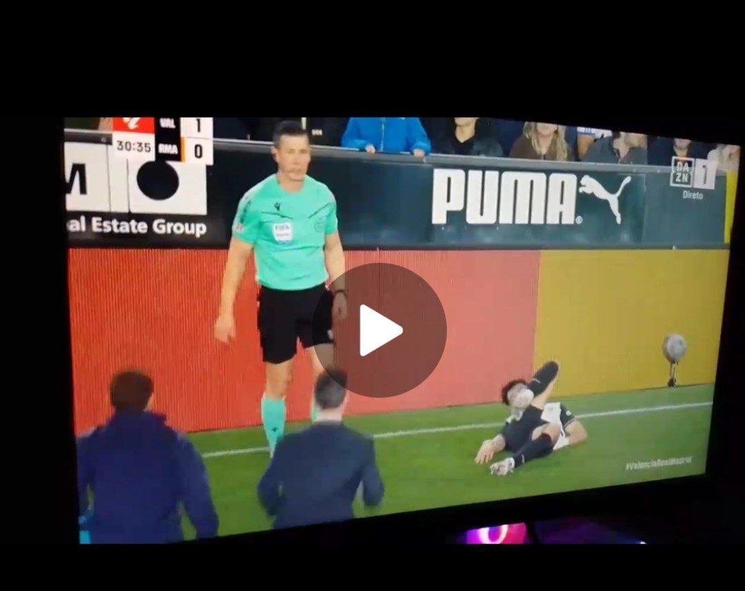 В трансляции видно, что судья остановил игру и вызвал бригаду, факт есть. 30 минута, есть видео.
